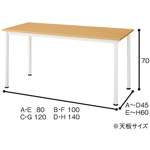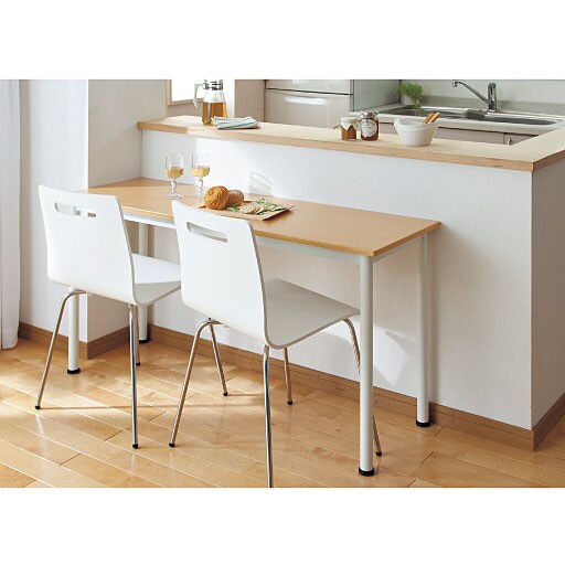 ナチュラルな天板で置く場所を選ばない使い勝手のいいテーブルです。奥行45cmと60cm、幅は80cm~140cmの4種類、8サイズからお選びいただけます。リビングルームでパソコン用はもちろん、趣味用、キッチンの作業台やちょい置きスペースに。サイズが豊富なので置く場所や使い方を選びません。薄型タイプ(奥行45cm)はダイニングのカウンターテーブルにもオススメです。シンプルなデザインなのでDIY用にも大変便利です。