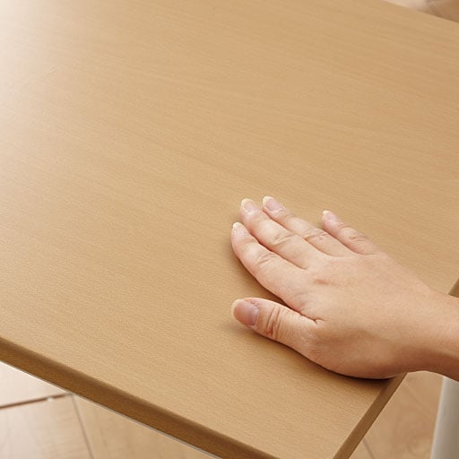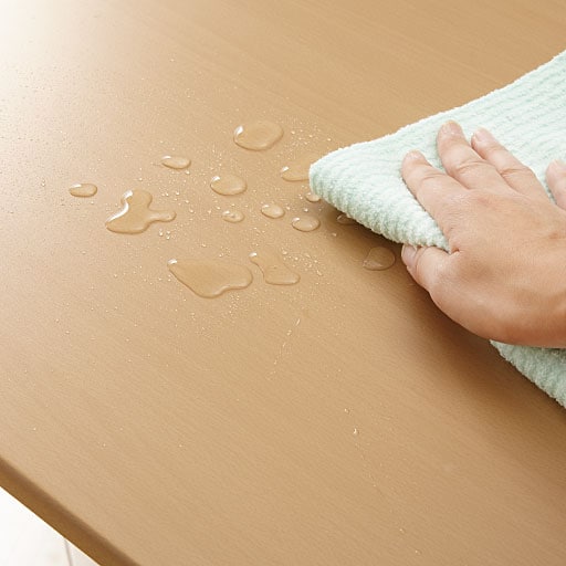 天板は塩化ビニル化粧合板で手触りも優しい仕上げです。 水汚れに強く、サッとふき取るだけで綺麗に。