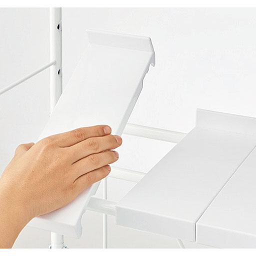 プラスチック製の棚板は、濡れてもサッと拭き取ればキレイに。