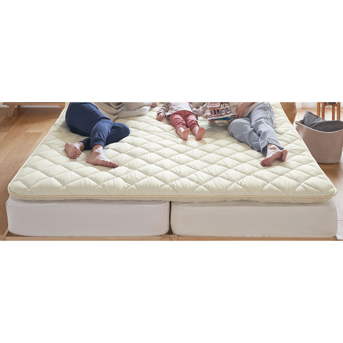 ベッドを2台つないでも、つなぎ目を気にせずゴロゴロ。並べたベッドや布団のズレ・隙間を気にせず広々とくつろげるワイドキングサイズなど、豊富なバリエーションをご用意した敷き布団です。寝心地や清潔機能にもこだわりました。