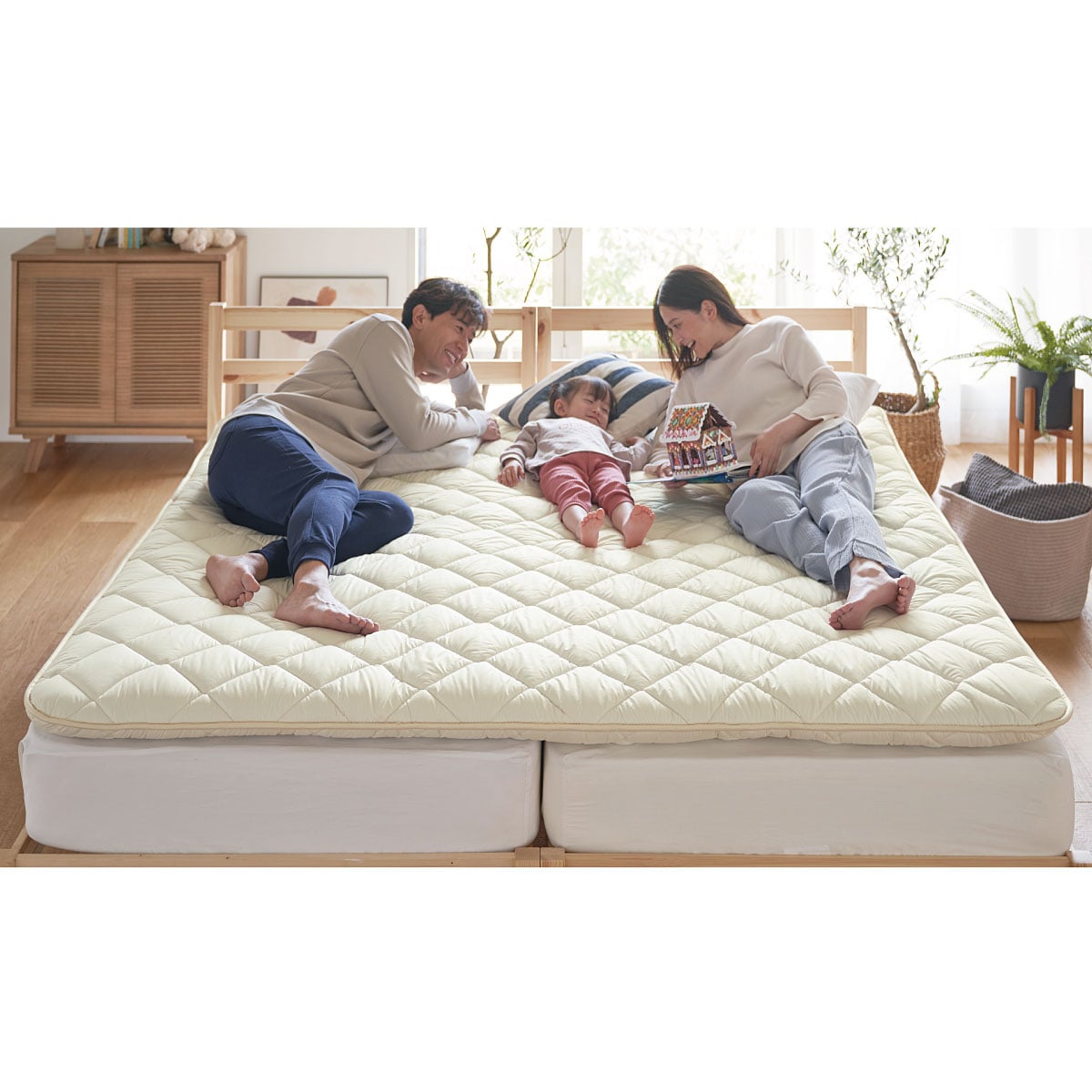 ベッドを2台つないでも、つなぎ目を気にせずゴロゴロ。並べたベッドや布団のズレ・隙間を気にせず広々とくつろげるワイドキングサイズなど、豊富なバリエーションをご用意した敷き布団です。寝心地や清潔機能にもこだわりました。