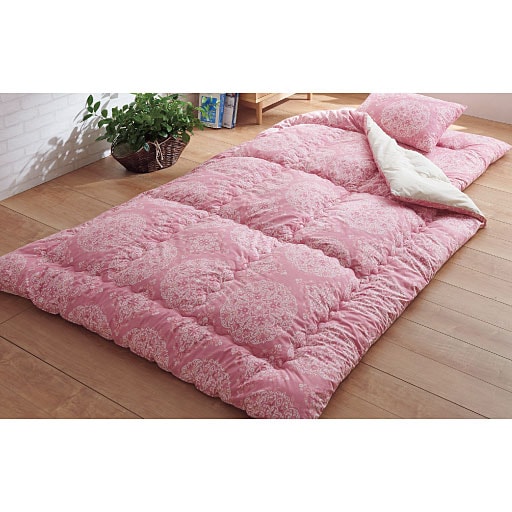 ピンク B (オーナメント)和式セットは掛け布団・敷き布団・枕のセット。