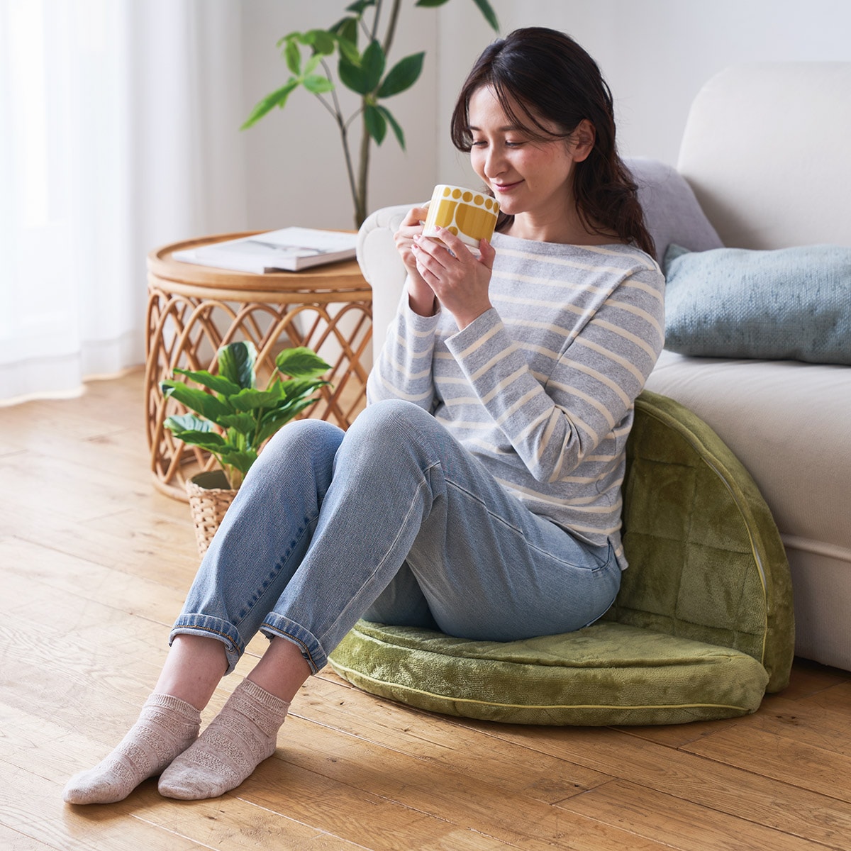 A (ソフトタイプ) (左から) ベージュ・ピンクくつろいで座ってもはみ出さない、ゆったり座れるサイズ。