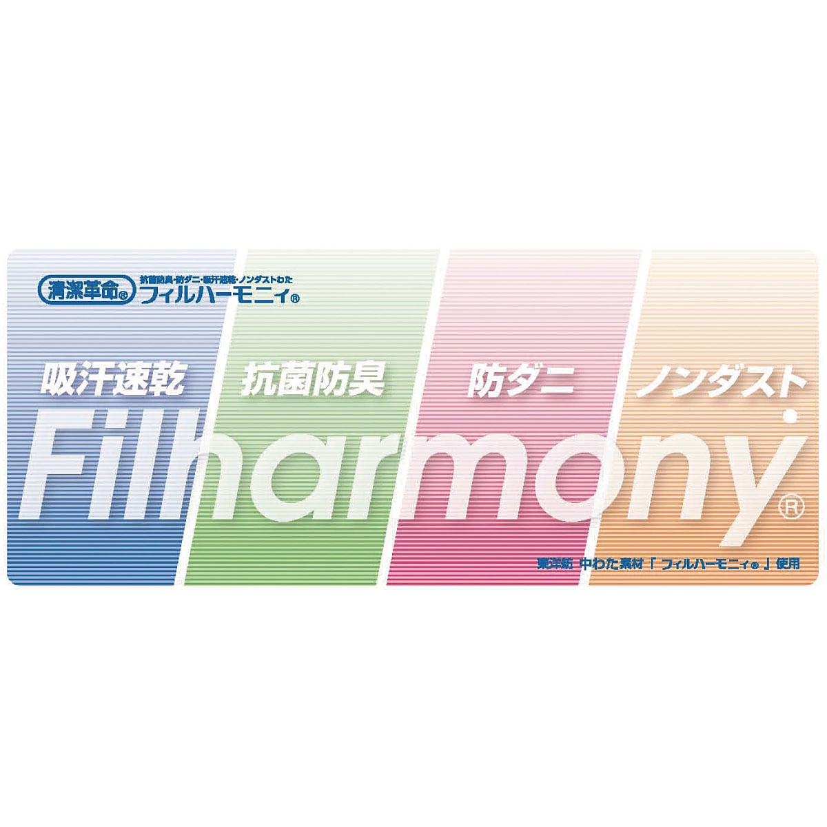 中わたは、高機能ポリエステルわた「フィルハーモニィ®」を使用。ニオイを抑えてダニの増殖を抑制。速乾性にも優れ、ホコリも出にくいオールインワンわたです。