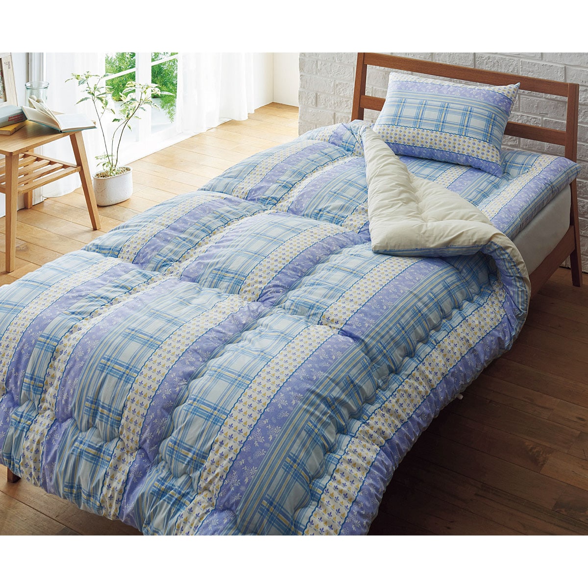 ブルー A (チェック) ※商品は敷き布団です。※掛け布団はXI-1411、枕はXI-1412(布団セット)を使用しています。
