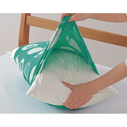 着脱が簡単な筒型タイプと、枕の端まで汚れをカバーできる封筒型タイプの2種類をご用意しました。 ※写真は筒型タイプです。