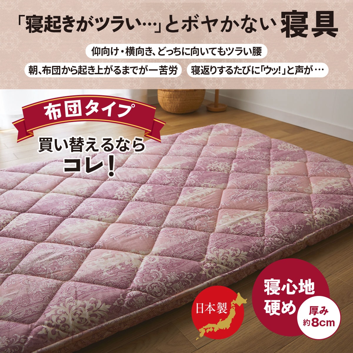 ピンク腰が沈みにくく寝返りしやすい! 寝心地かための敷き布団です。