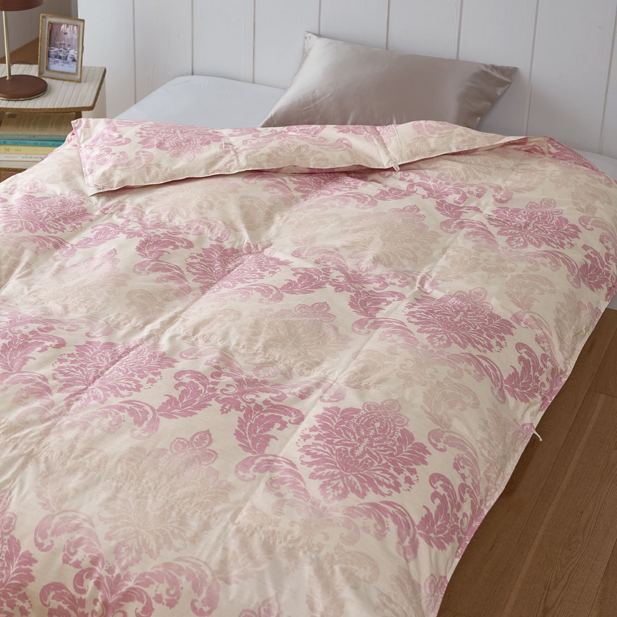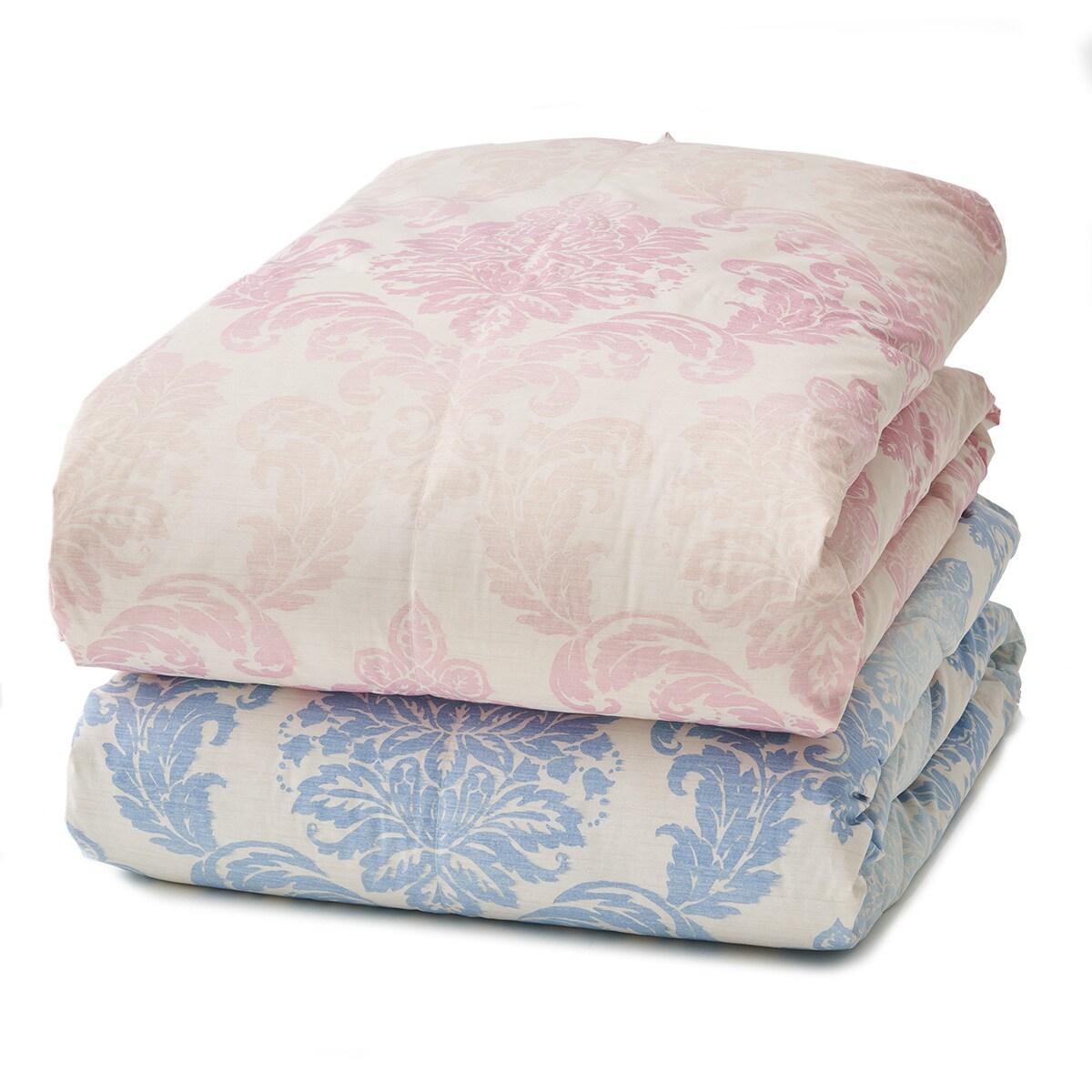 ■[側生地]ポリエステル85% 綿15% [詰め物]ダウン93% フェザー7% ■羽毛量/0.16kg ▼商品によって柄の出方が多少異なります ●8ケ所カバー止めループ付き ●洗濯機OK(ネット使用)●日本製【ダウンプルーフ加工】 【防ダニ加工】【収納袋付き】 【小型別配送】 ※カラーA(ピンク・ブルー)はシングル2枚組のみの販売です※沖縄県や一部島しょ部など配送上の都合によりお届けできない地域がございます。