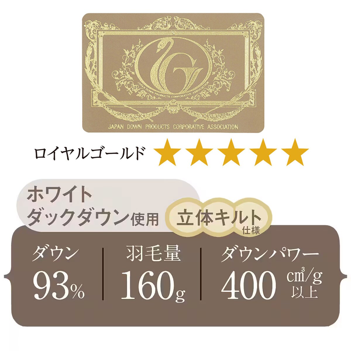 ダウンパワー400立方cm/g以上! 確かな品質のロイヤルゴールドラベルです。