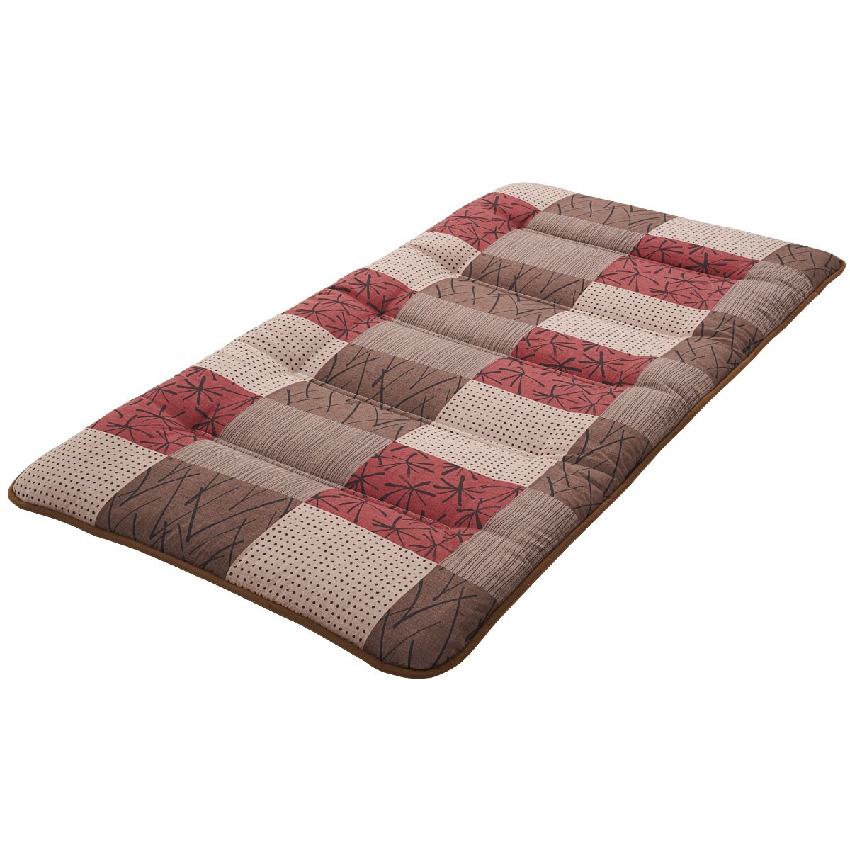 A (格子柄/エンジ系)厚み約5cm。固わた入りで床付き感も軽減します。