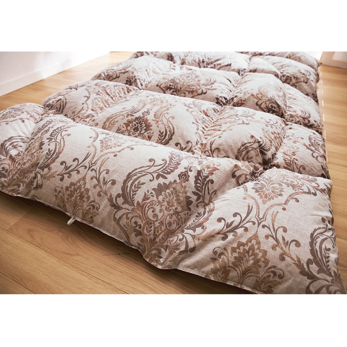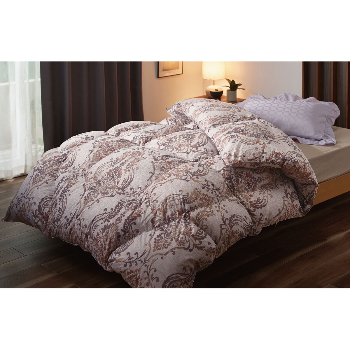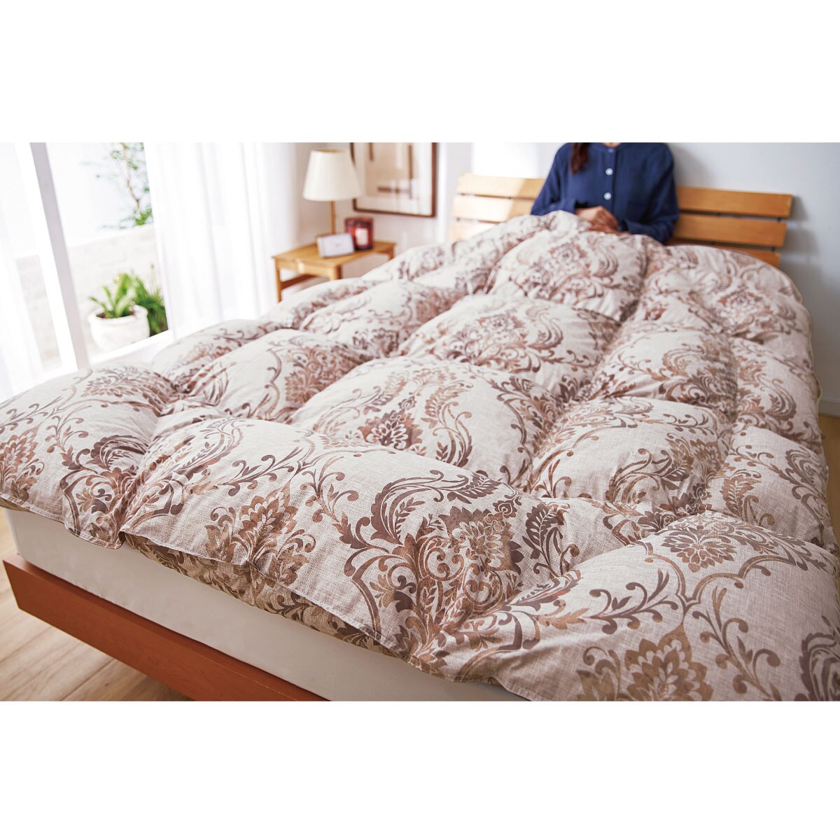 1マスごとにマチが付いた立体キルト仕様で羽毛のふくらみを妨げず、贅沢なボリューム感に。
