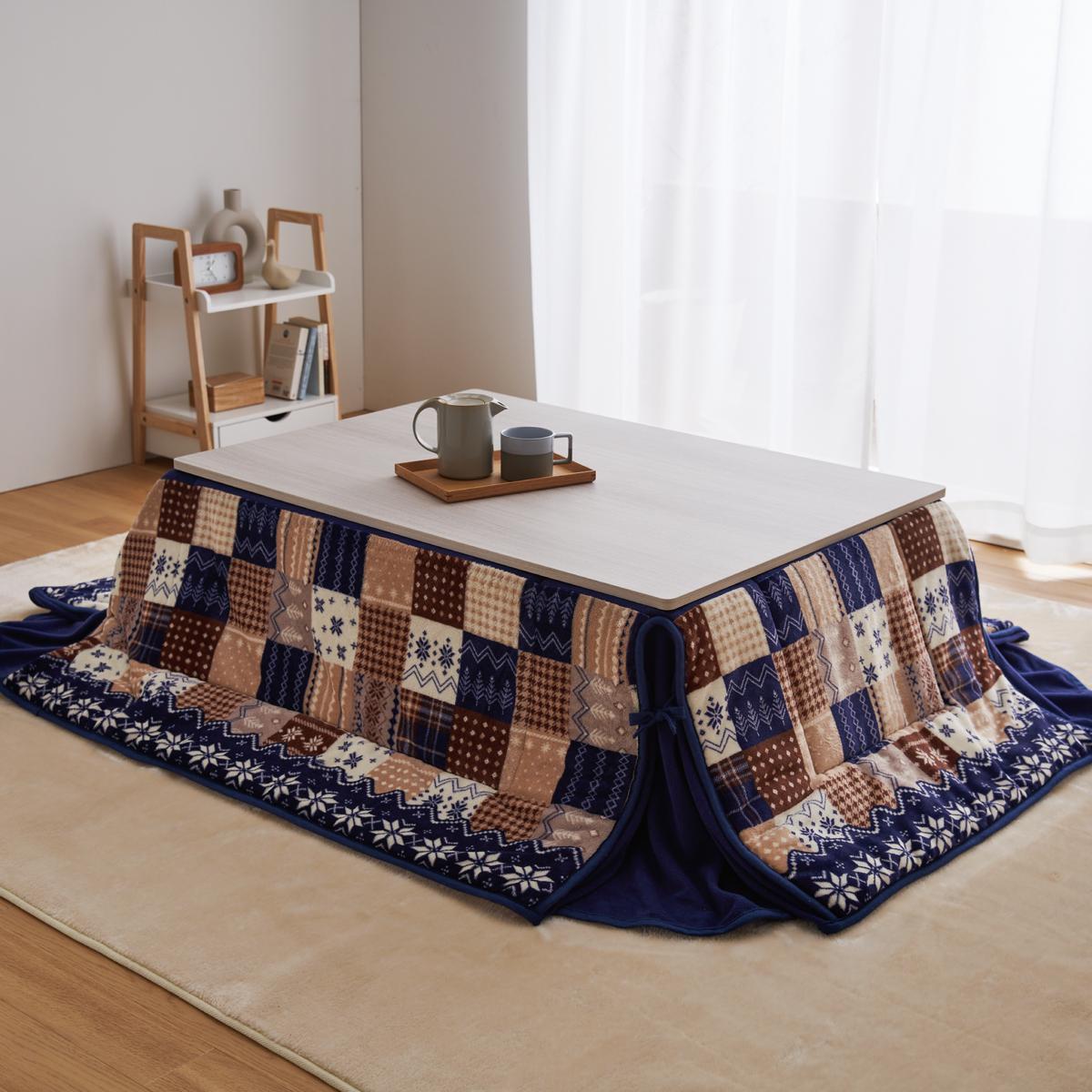 四隅スッキリ! つまずきにくい省スペースタイプのこたつ掛け布団です。