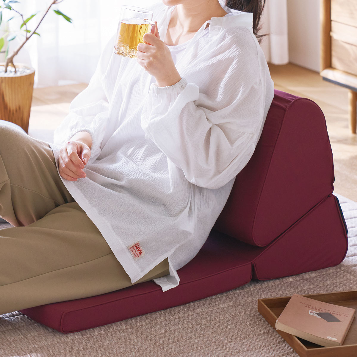 エンジ折り畳んで座椅子に。背中を預けて座れて楽ちん。