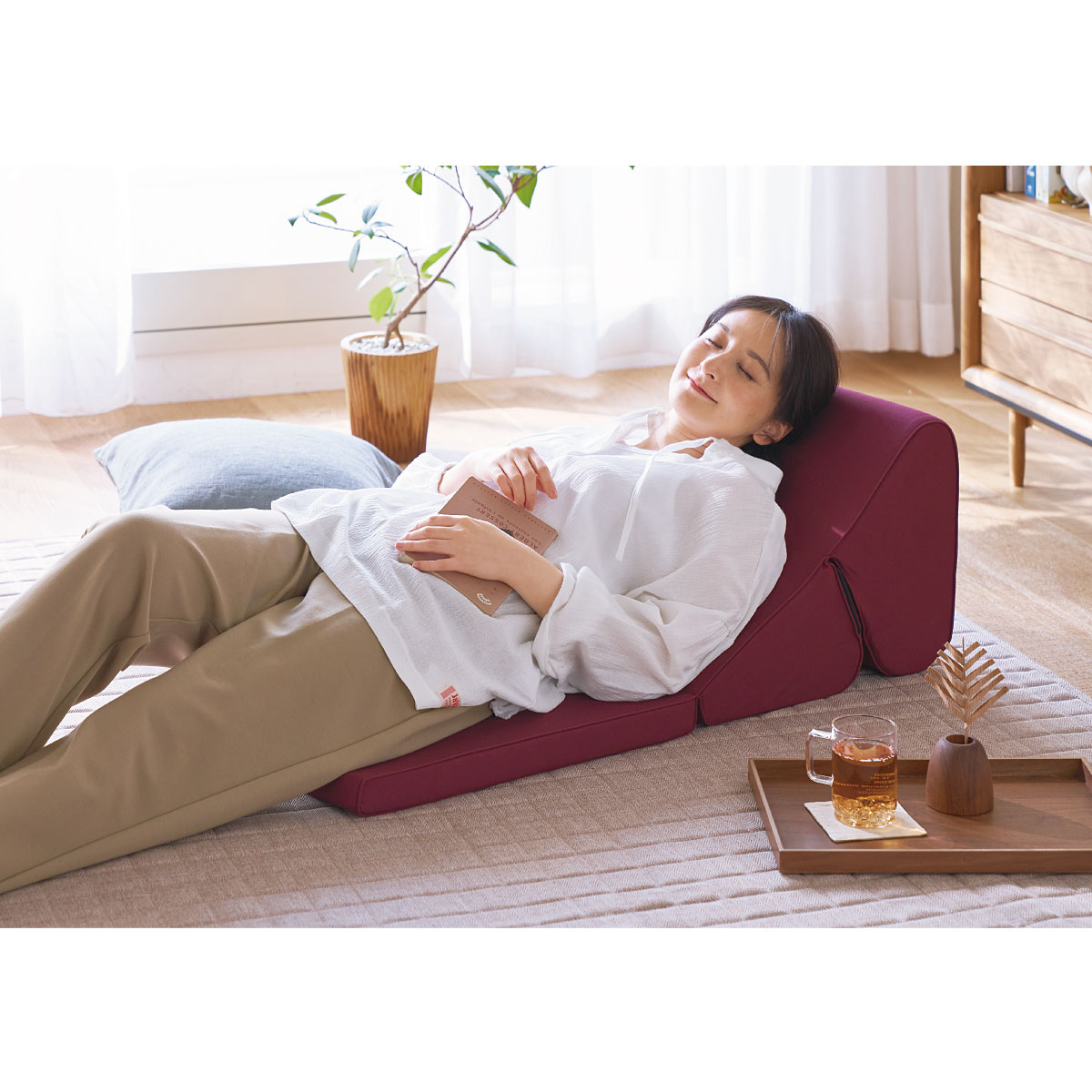 使い方に合わせてカタチを変えられる優れもの! お家のくつろぎタイムにピッタリなごろ寝クッションテレビまくらです。なだらかなカーブとしっかりしたウレタンフォームで身体がラクラク。コンパクトにたたんで収納できます。