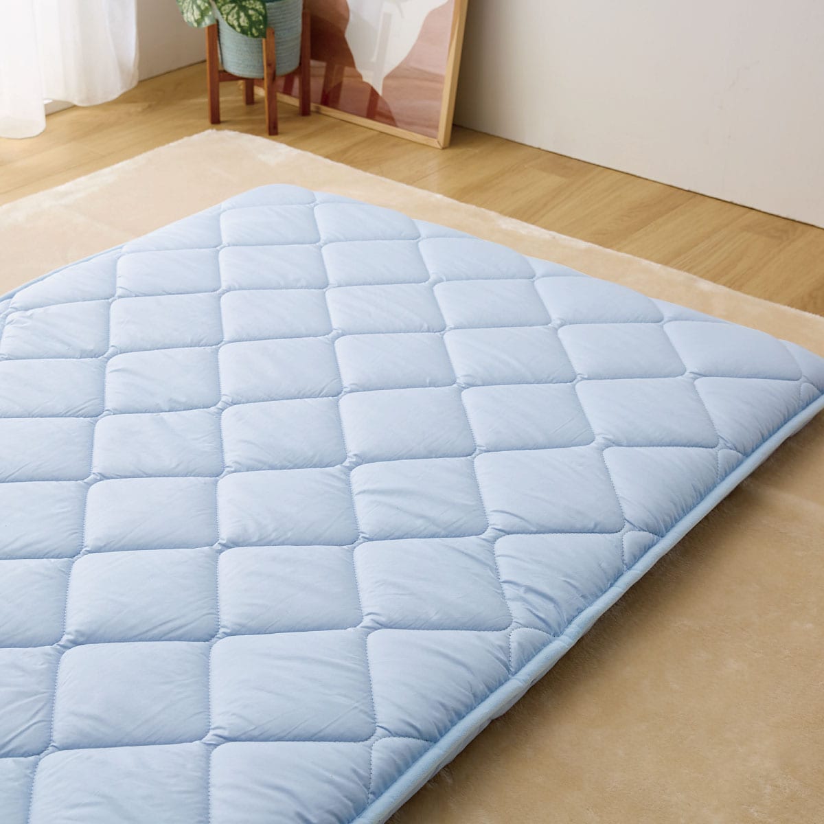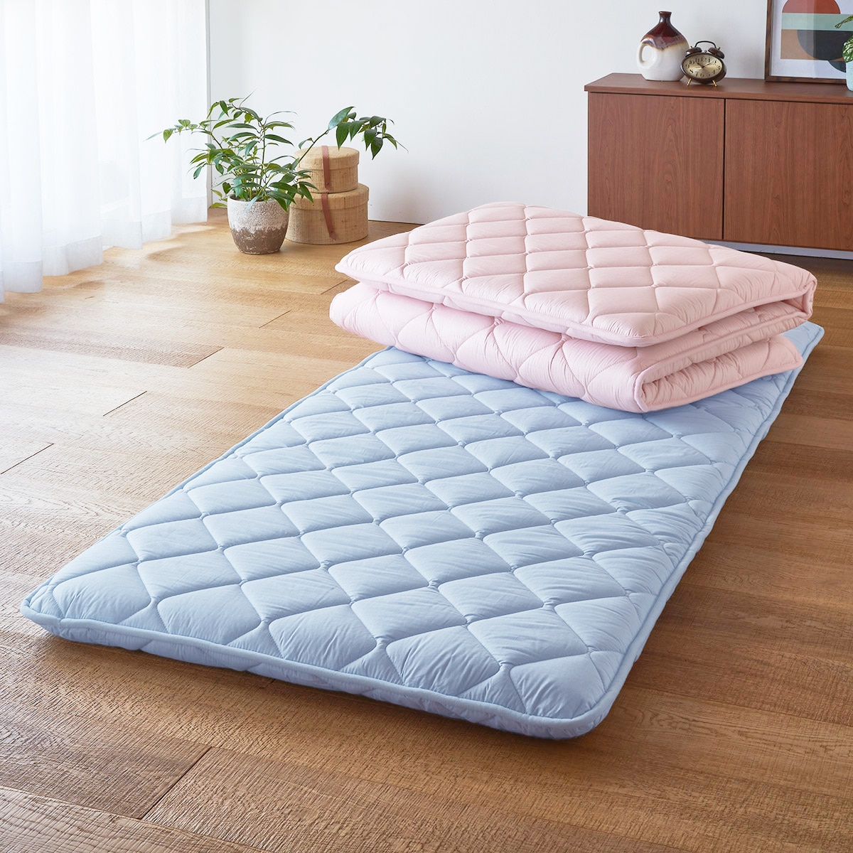 (上から)ピンク・ブルー機能性に優れた羊毛敷き布団です。