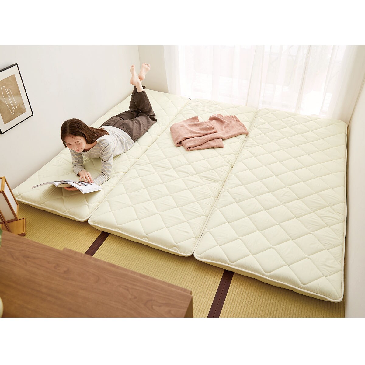 アイボリー狭い空間に並べて敷ける!お子様の添い寝にも!