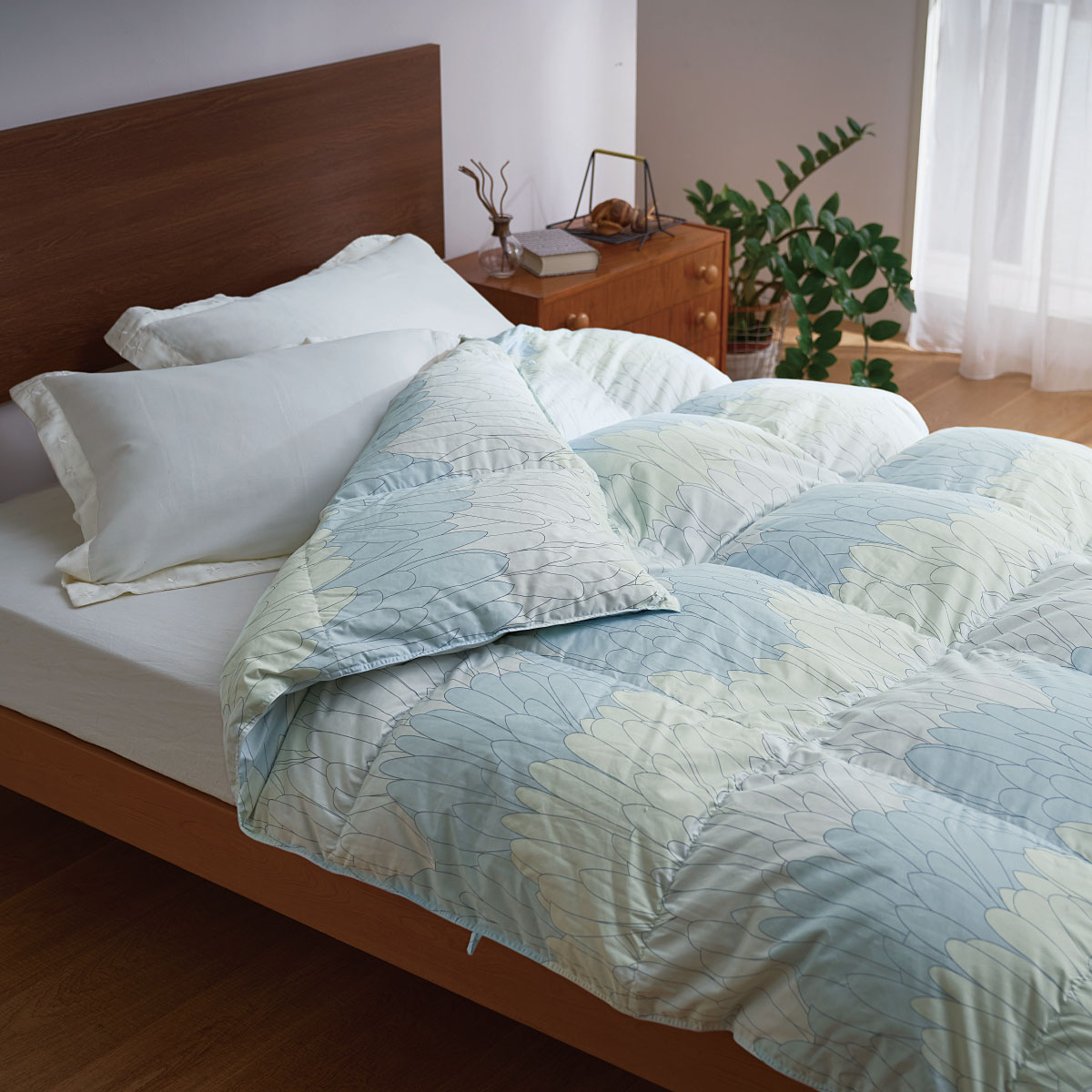 ブルー季節の変わり目にもおすすめ! 軽量タイプの羽毛掛け布団です。