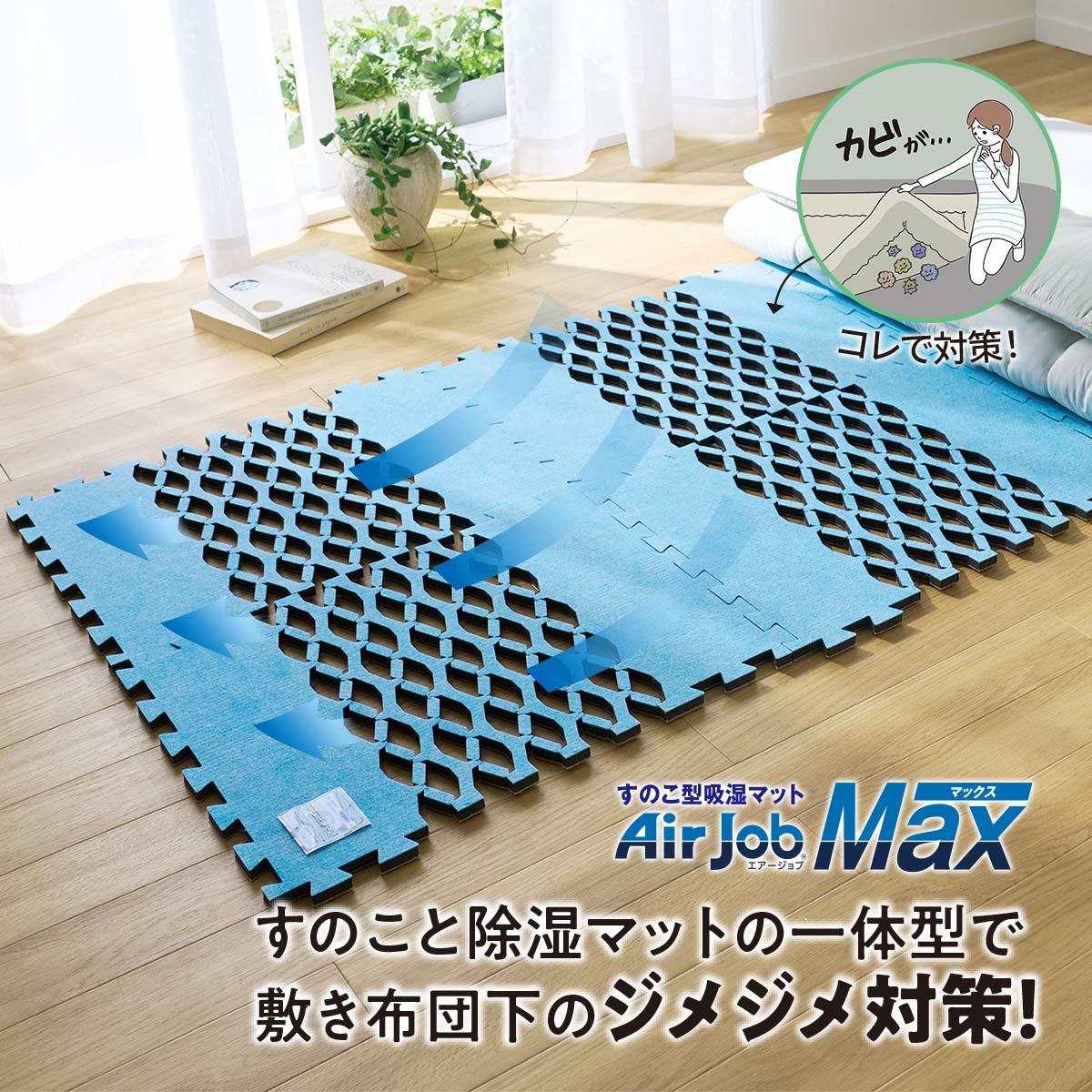 すのこの通気性と高い吸湿力で1枚2役! 湿気&カビ対策におすすめの、すのこ型吸湿マット「エアージョブ®」Maxです。敷き布団の下はもちろん、押入れやクローゼットなどいろいろな場所で大活躍! 乾燥させて繰り返し使えます。