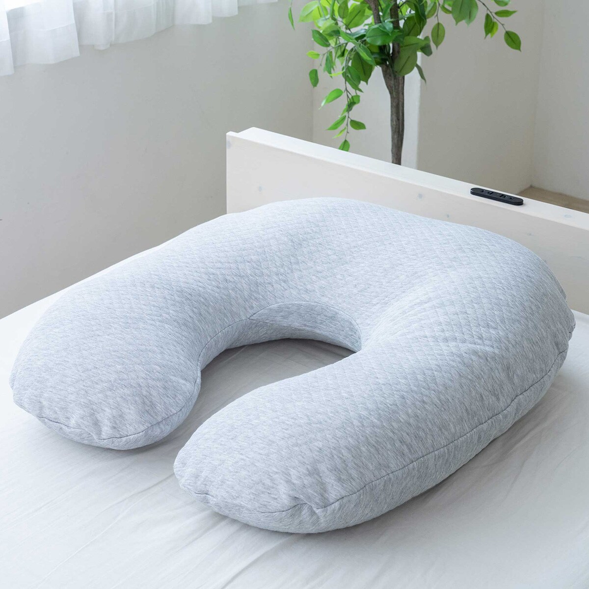 頭だけでなく身体を包み込んで、肩・腕・腰への負担がやわらげられるように考えて設計された特殊な形状です。