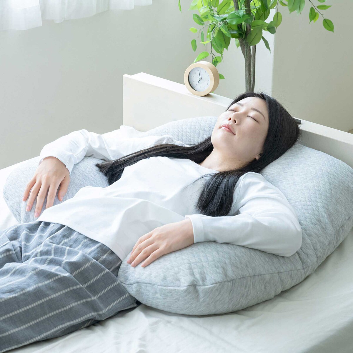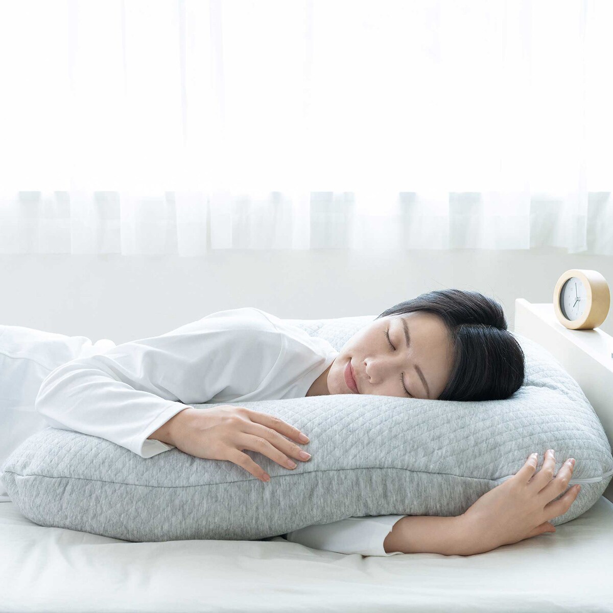 寝転びながらスマホを使っていると腕の疲れや肩のコリがツライ…そんな方におすすめ! 頭・首・肩・腕・腰の5点支持による贅沢な浮遊感で、寝る前のスマホ時間がもっと快適になるまくらです。肘を置けるから仰向けで寝転んだ状態でもラクにスマホが使えます。抱き枕の代わりにしたり、背もたれにしたりなどいろいろな姿勢にフィット。ふんわり気持ちいい空気層ニット生地を使用した専用カバー付き。カバーは洗濯機で丸洗いできるので、いつも清潔にお使いいただけます。
