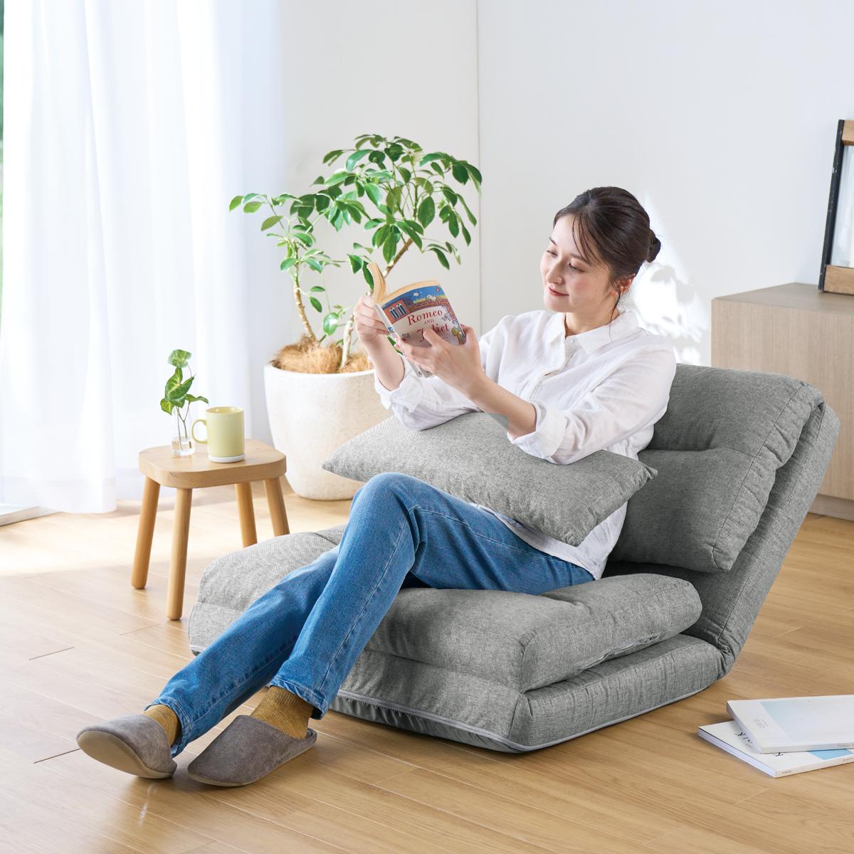 グレー3つのスタイルでくつろげるマットレス 背もたれはお好みの角度にリクライニング