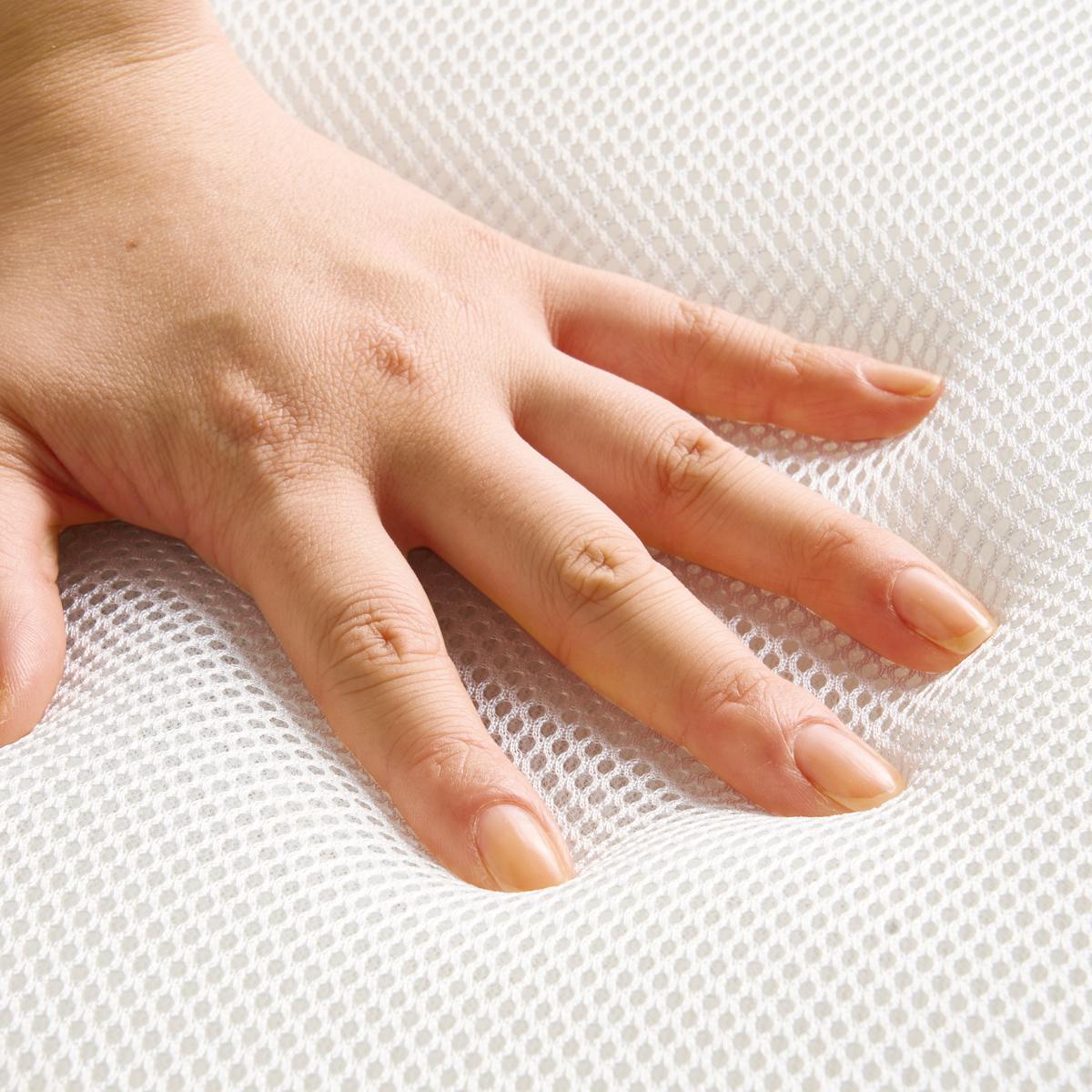 硬い面・柔らかい面の両方がメッシュ生地で通気性よく、サラッと快適。