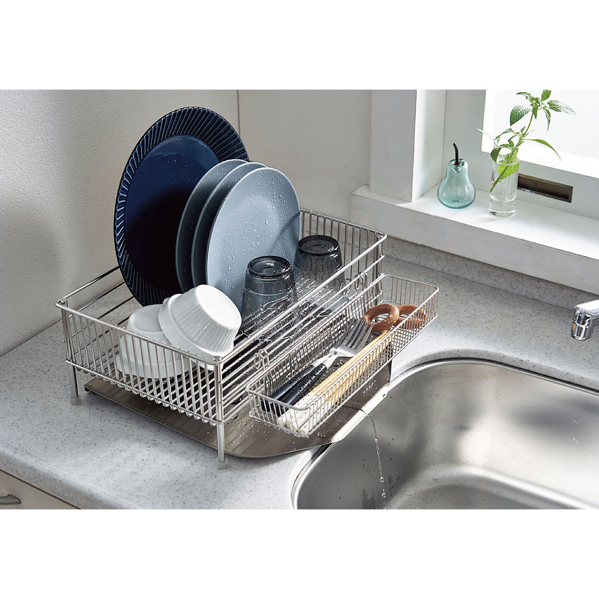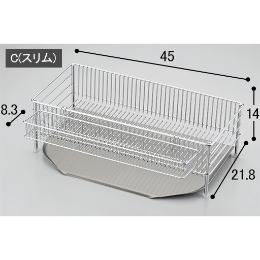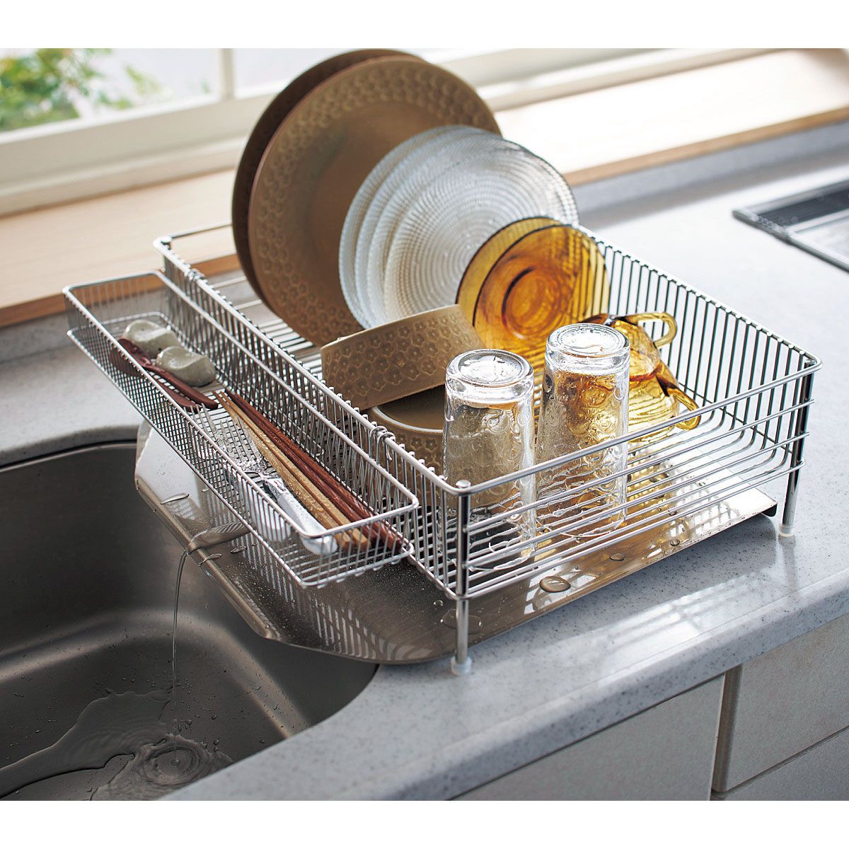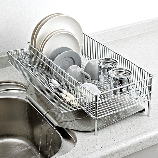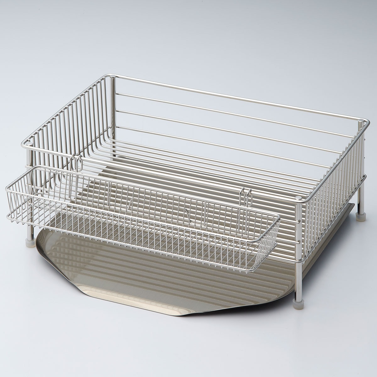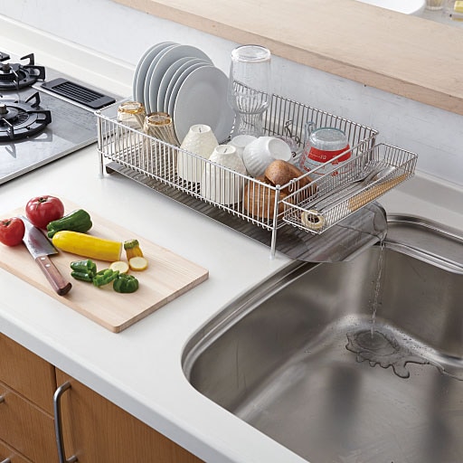 斜めトレーで水が自然にシンクに流れます。丈夫な線材を使用した、高品質な水切りシリーズです。