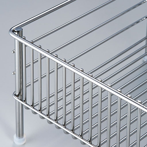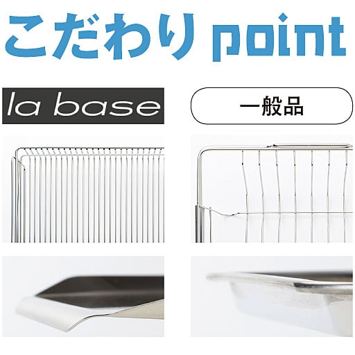 底部分のワイヤーに溶接部分がなく、トレー部は縁の巻き込みがないので汚れがつきにくく、水切れバッチリでヌメりを防ぎます。