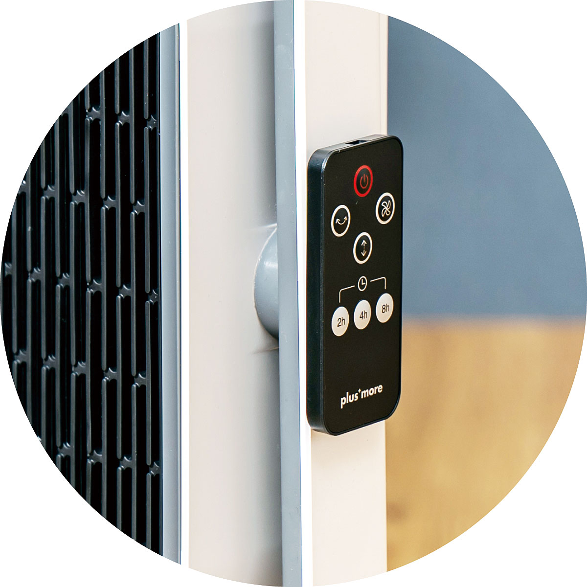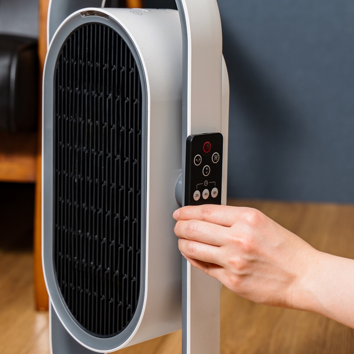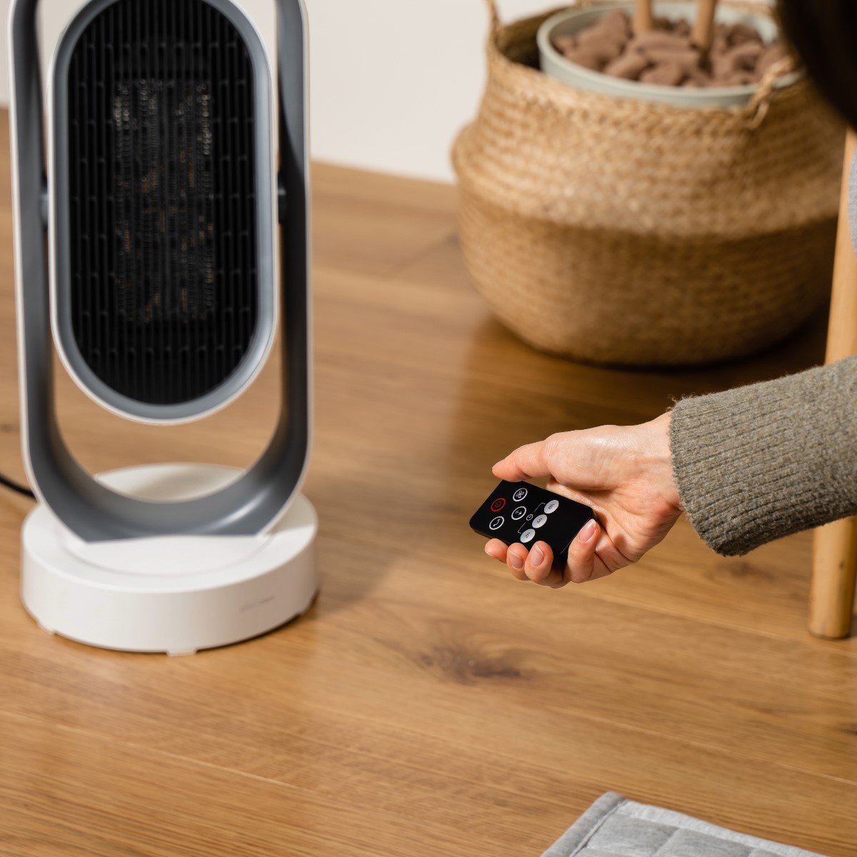 夏場の扇風機、冬場の暖房に一年中大活躍します。広範囲に風を送る3D機能を搭載しており、上下だけ、左右だけの首振りも可能です。本体が倒れたときに自動停止するスイッチや、サーモスタット、温度ヒューズなどの安全機能を搭載しているので安心してお使いいただけます。また、便利なオフタイマーがついており、2/4/8時間の設定が可能です。リモコンは、内蔵のマグネットで本体にピタッと収納できるので、場所をとらず、紛失することもありません。