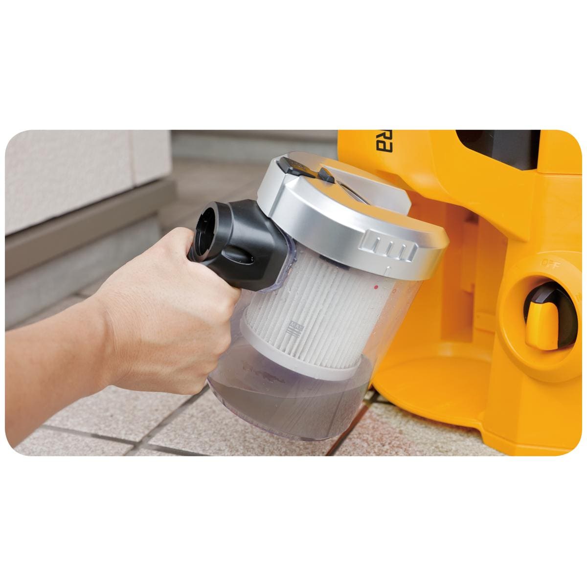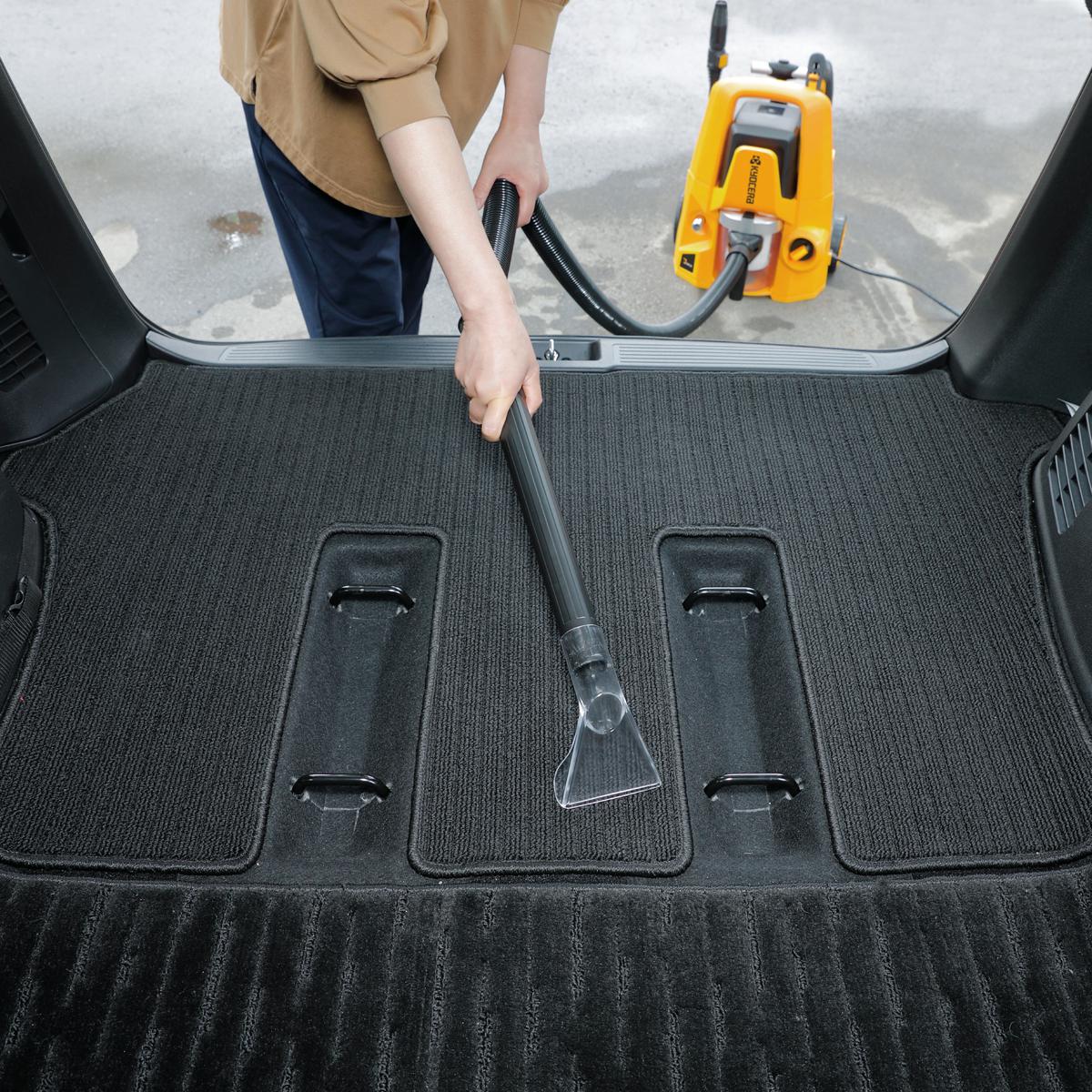 洗浄後の汚水も簡単バキューム!乾湿両用のバキューム機能で車内の掃除にも活躍!