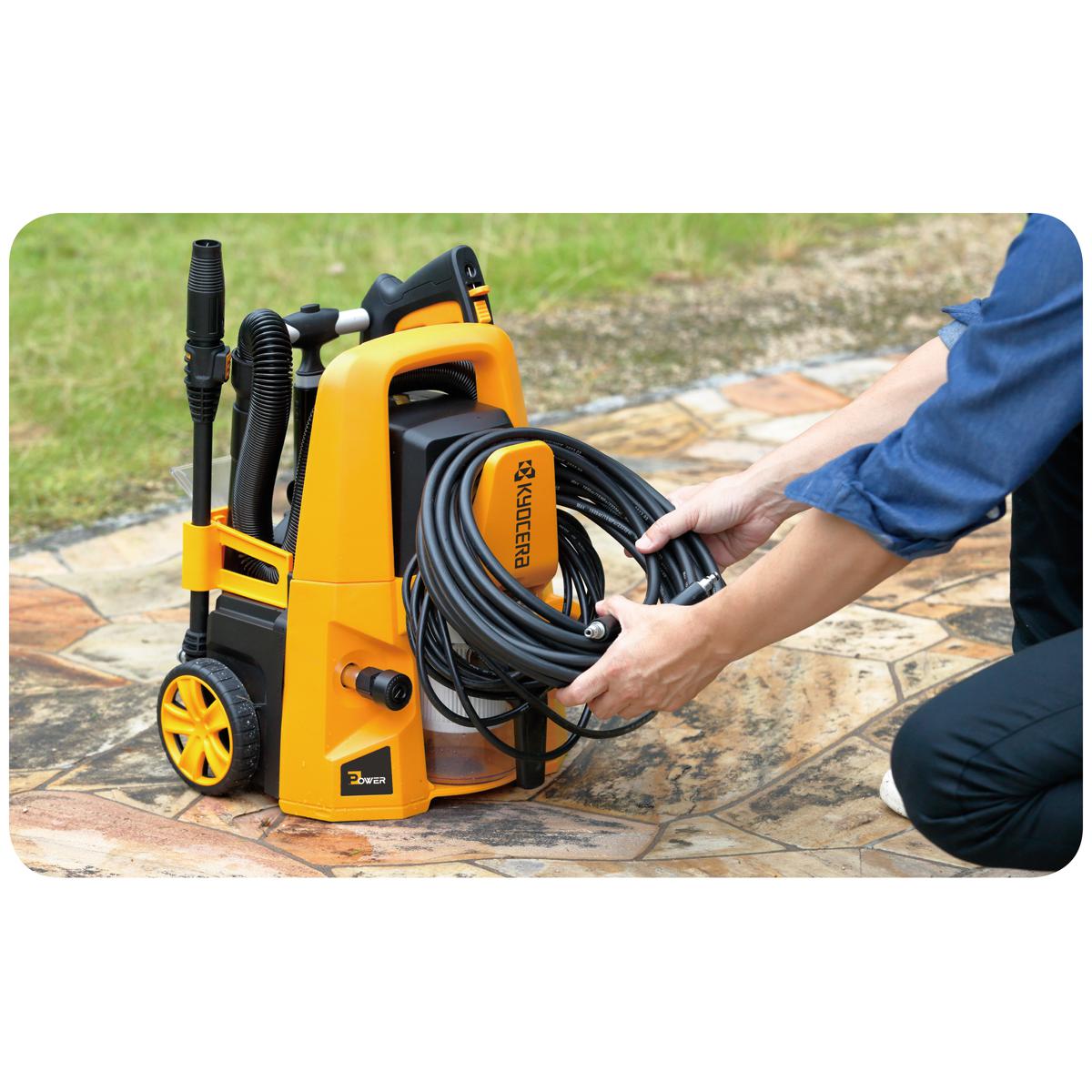 コードを束ねてすっきり片付け 付属の高圧ホースやノズルも本体に収納できます。