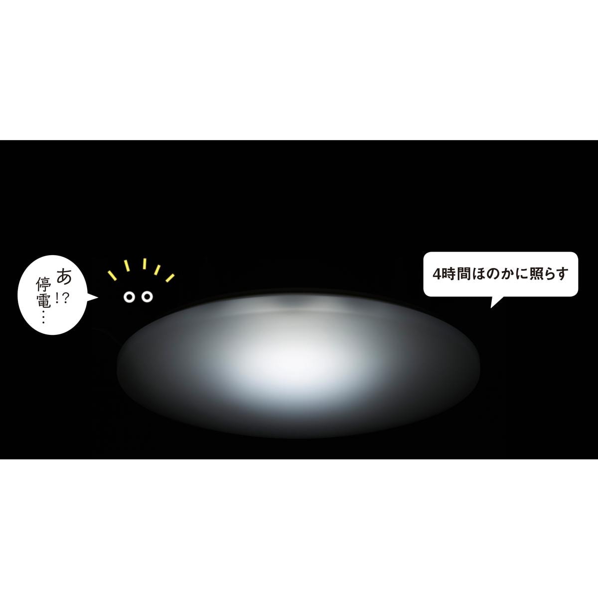 停電の時に自動で点灯する安心で便利なシーリングライト。4時間ほのかに照らすので暗闇を回避。「手元灯」付きリモコンがあるので、離れたとこからでも操作可能。非常時は懐中電灯としても使用できます。11段階調光なので、シーンによってお好みの明るさに調節可能。※停電用のライトの電池は同梱されておりません。単3形アルカリ電池4本を購入してください。
