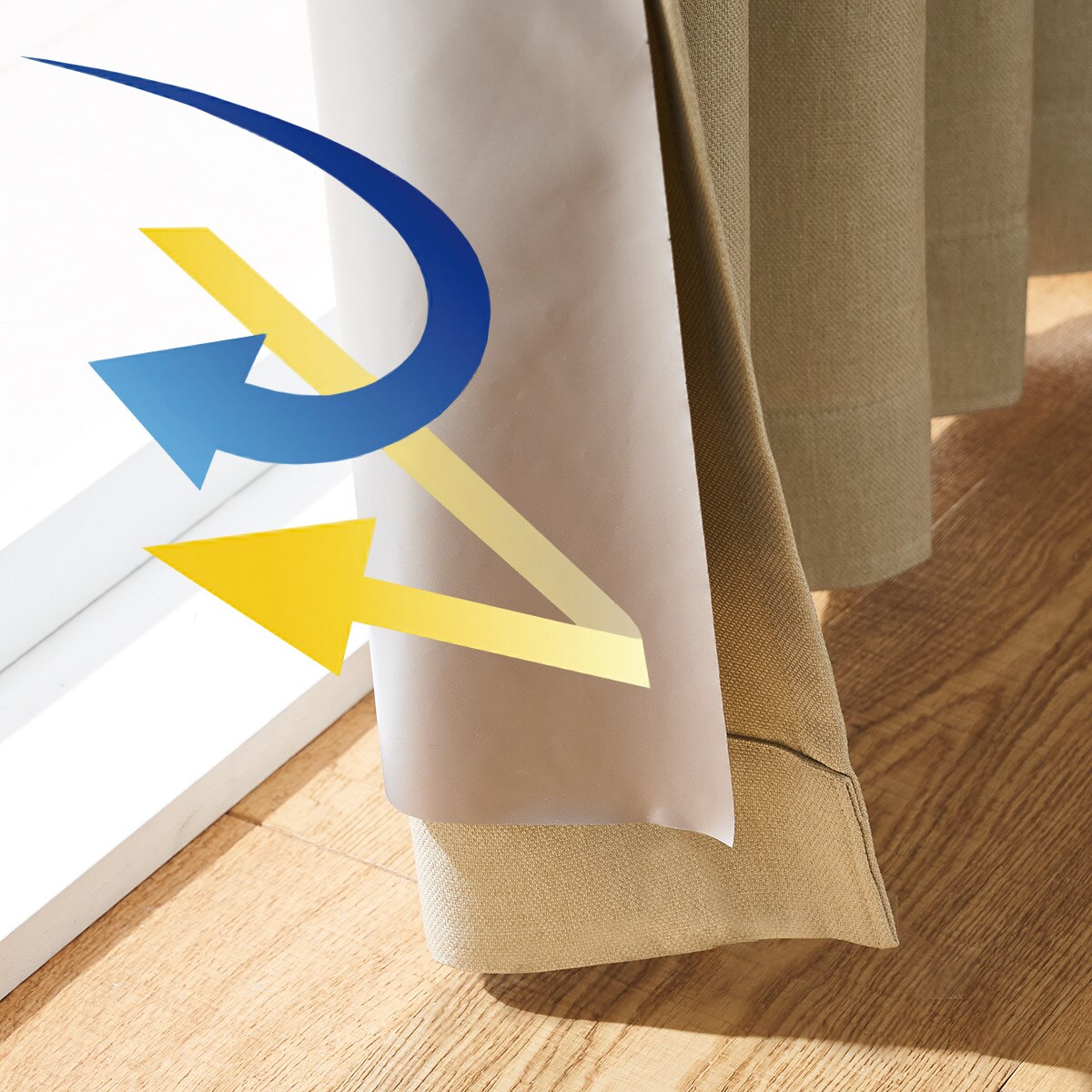 ライナーをプラスするだけで省エネできる!アルミコーティング加工を施したシルバー生地ライナーとカーテンとの間に生まれた空気層が遮熱・保温効果を発揮、冷暖房効率をアップします。