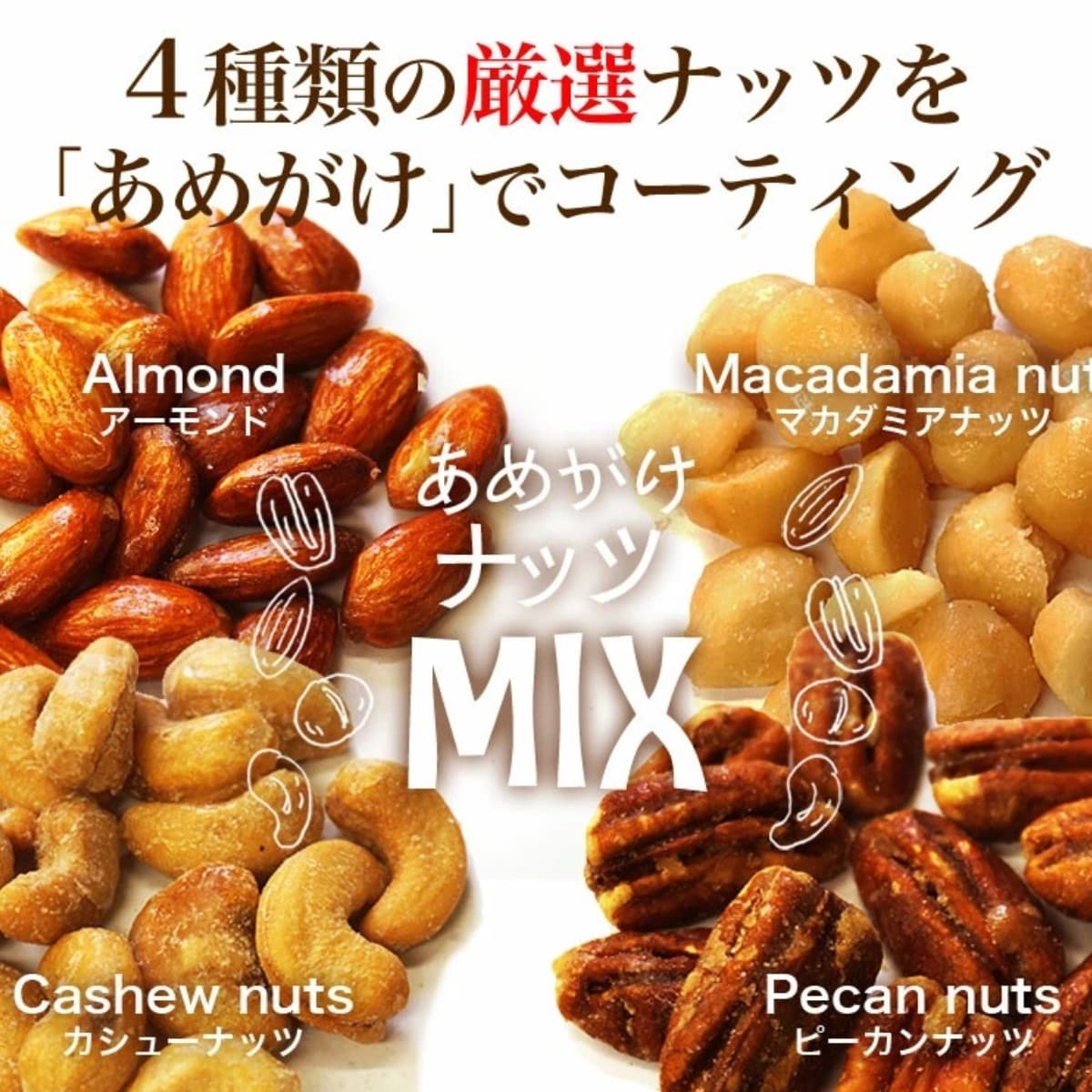 4種類の厳選ナッツを「あめがけ」でコーティング