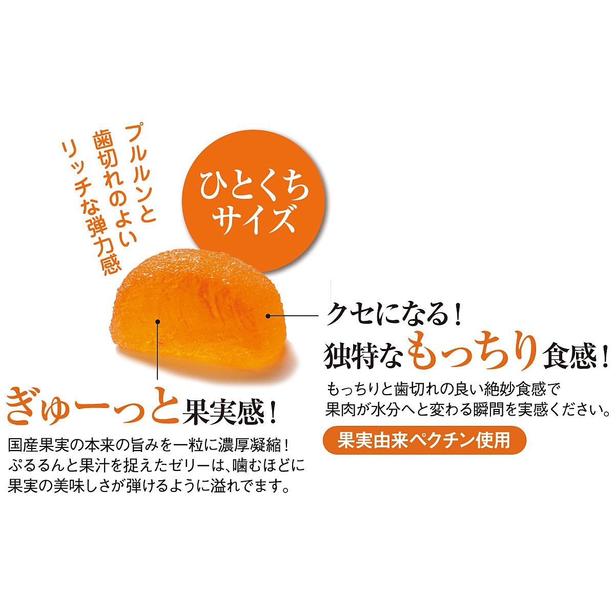 旨味が豊富な果汁とジューシーな果肉は、ゼリーになってもフルーツ本来のおいしさをお楽しみいただけます。お口の中一杯に弾けるジューシー感はまるでもぎたての果実を頬張ったかのようなみずみずしさ!