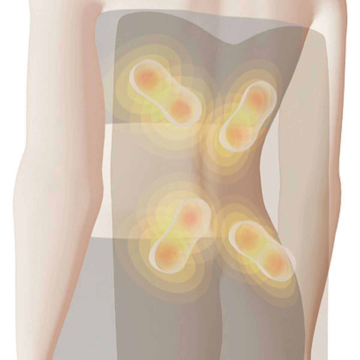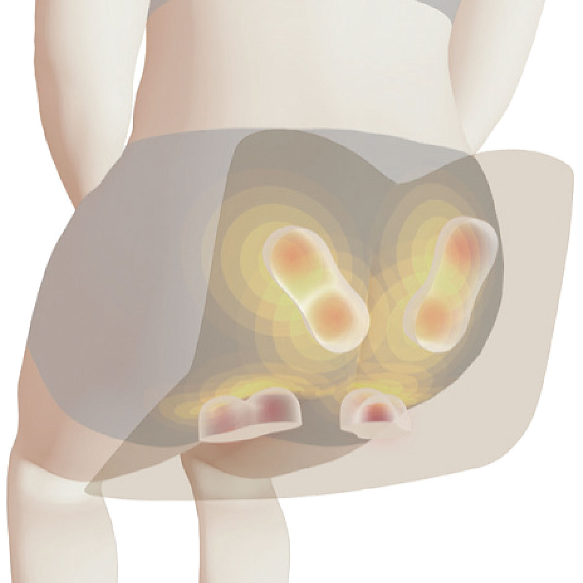 お尻 L型形状と強力モーターで、お尻のマッサージが可能に。筋肉が重なる部分に深く、力強く、集中アプローチ!※イメージ