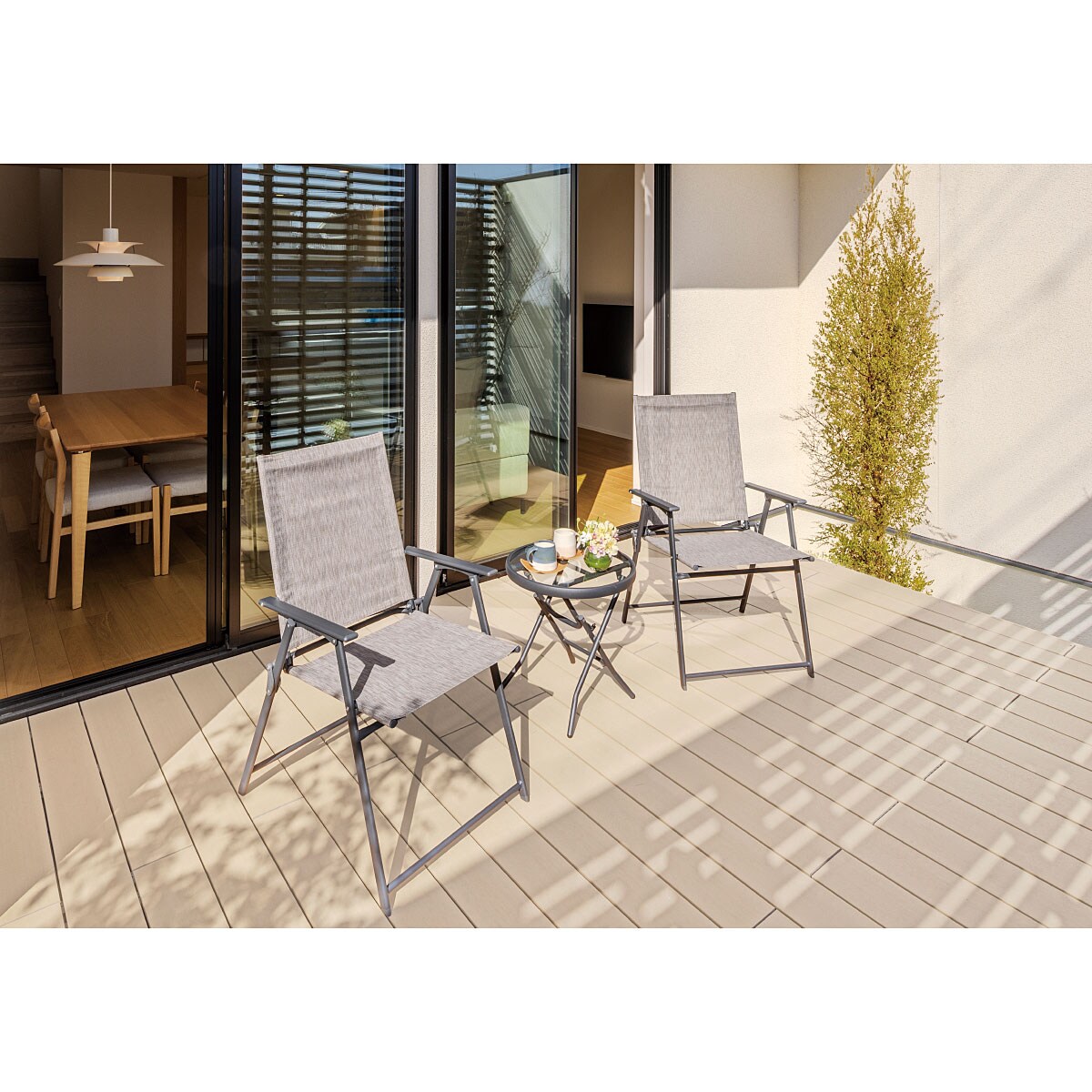 〈軽量・折りたたみのテーブルとチェアがセット!〉ベランダ・バルコニーがすぐにティーラウンジに♪