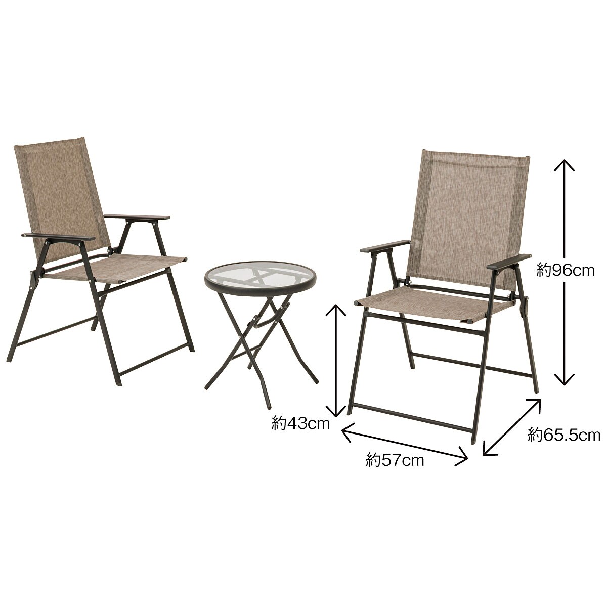 ■[フレーム]スチール[天板]ガラス[座面・背もたれ]塩化ビニル樹脂、PET■サイズ(約cm)/[テーブル]46×46×48[チェアー]57×65.5×96※座面高さ43■折りたたみサイズ(約cm)/[テーブル]62.5×46×5.5[チェアー]90×57×5.5■重量(約kg)/[テーブル]3.8[チェアー]3.9●中国製【大型別配送】※沖縄県や一部島しょ部など配送上の都合によりお届けできない地域がございます。