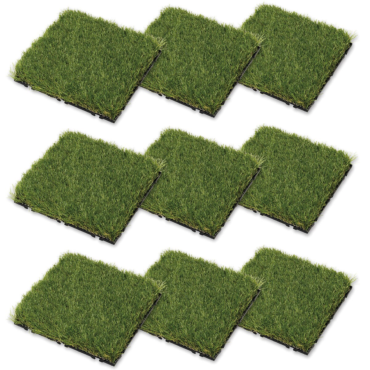 お得な9枚セット。タイルを繋げるだけで、女性でも簡単に設置できます。面倒なメンテナンスの必要がなく、1年中通してふさふさ青々とした芝生を楽めます。〇マットの下にスペースがあるのでお手入れもラクになります。【高さがあるメリット】(1)ゴミや枯れ葉が詰まりにくい(2)排水がスムーズ。掃除しやすい。(3)防虫剤が設置可能。害虫対策ができる。〇清潔で安心して使える抗菌加工裏面はメッシュ構造で水はけも良好〇ふわっとやわらか4種類の芝を使用したリアルな質感
