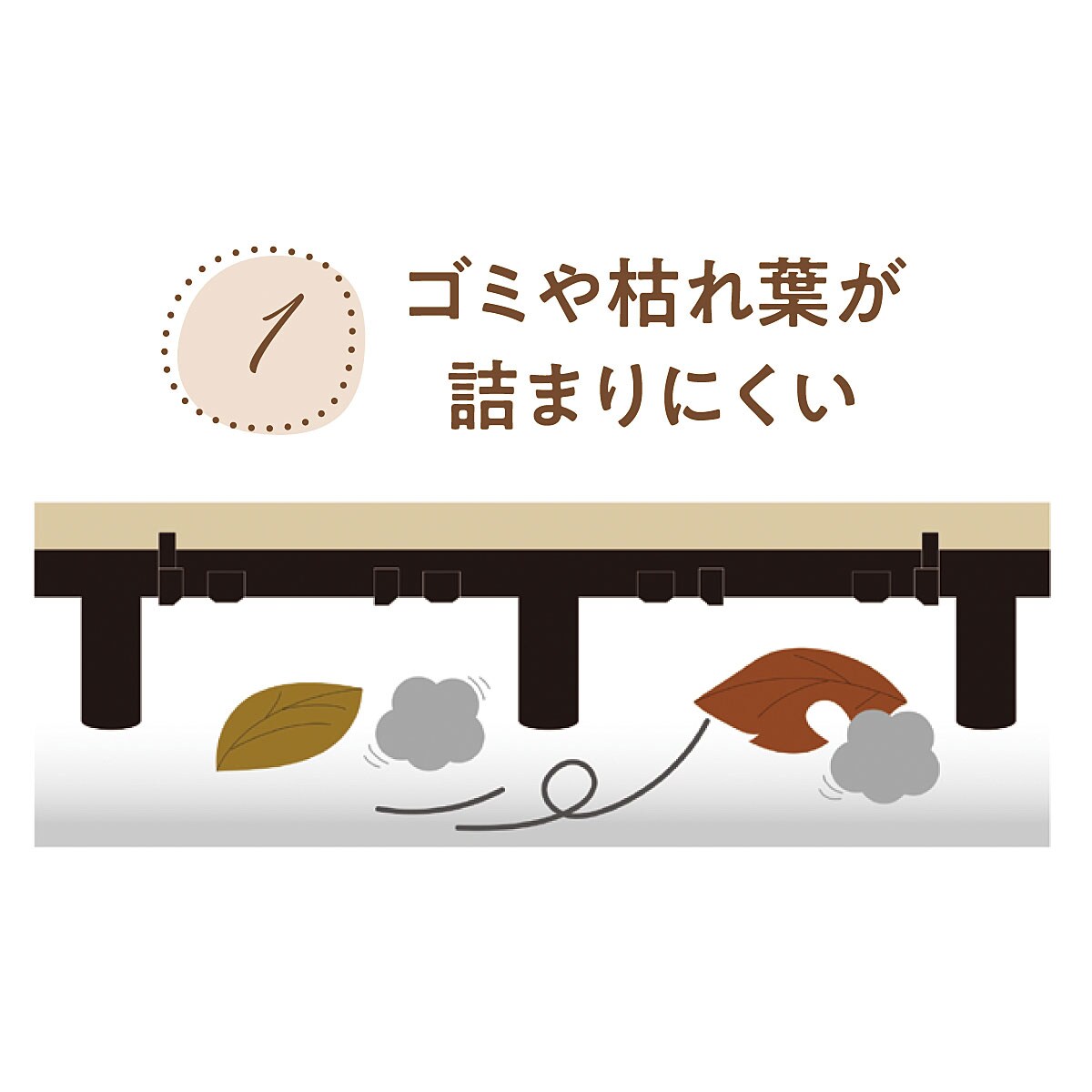 お得な9枚セット。タイルを繋げるだけで、女性でも簡単に設置できます。〇マットの下にスペースがあるのでお手入れもラクになります。【高さがあるメリット】(1)ゴミや枯れ葉が詰まりにくい(2)排水がスムーズ。掃除しやすい。(3)防虫剤が設置可能。害虫対策ができる。