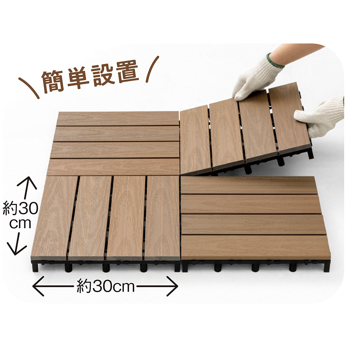 ■木粉、ポリエチレン、ポリプロピレン ■サイズ(約cm)/30×30×高さ4.1 ■重量/約1.35kg(1枚あたり) ●セット内容/9枚●中国製【小型別配送】※沖縄県や一部島しょ部など配送上の都合によりお届けできない地域がございます。