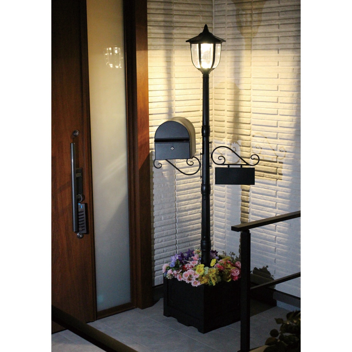 玄関先が昼も夜もお洒落!ポスト付き華やかプランター街灯
