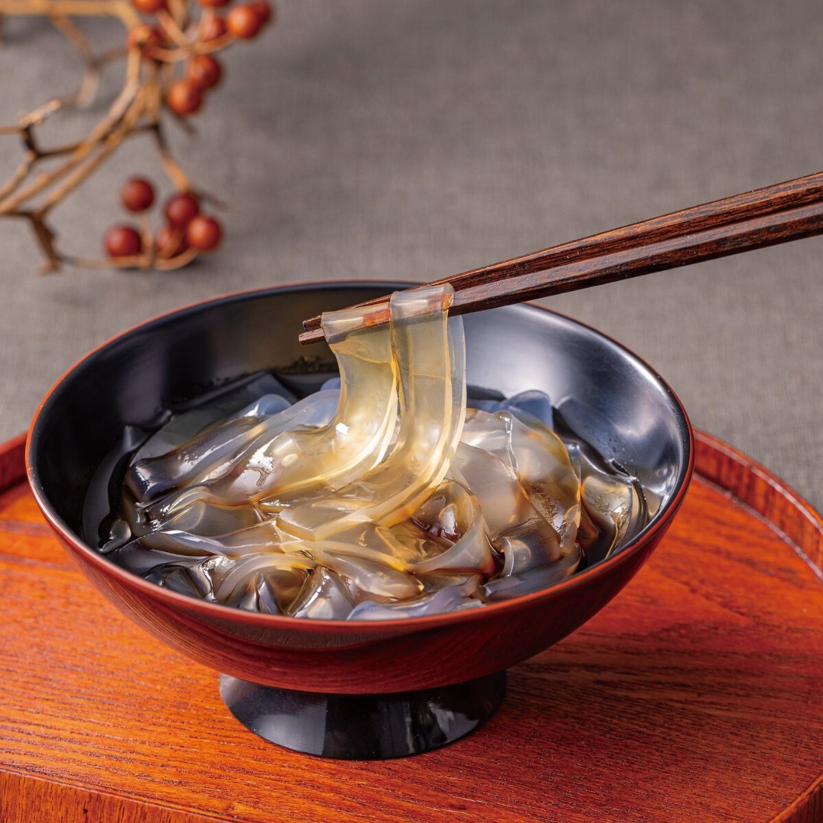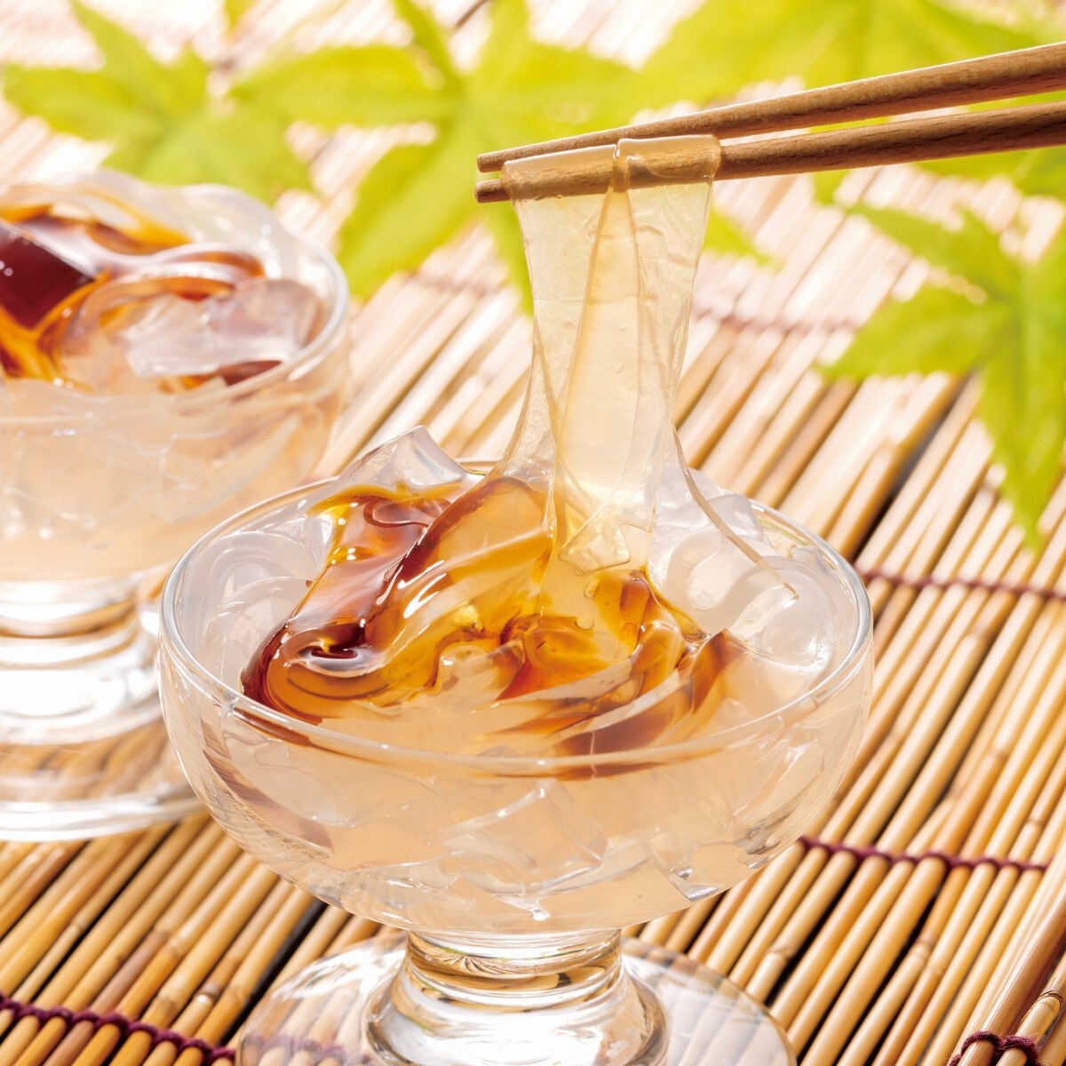 もちもちの葛切りに黒みつをかけてもゼロカロリー!※※食品表示基準に伴い0kcalと表示しております。