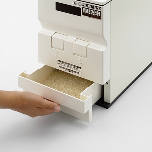 丈夫で長持ちするスチール製米びつ。無洗米もきちんと計れる無洗米アタッチメントがついて便利。フタが外せるので、重いお米の投入もスムーズに。容量4タイプからお選びいただけます。