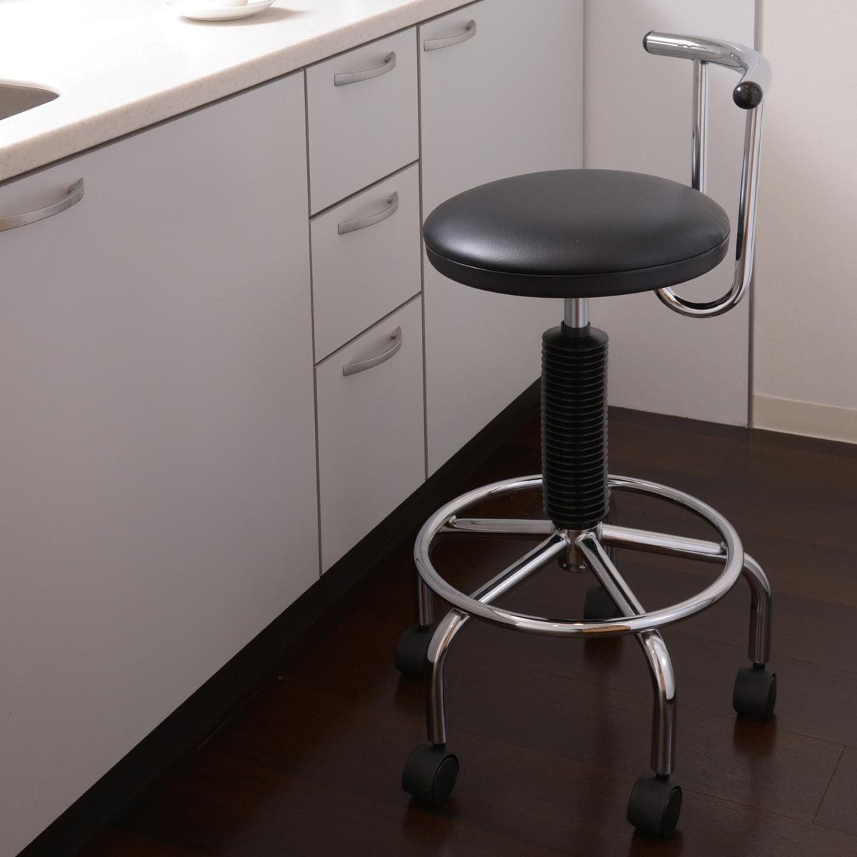 ブラックキッチンの立ち仕事が楽になる、キャスター付きの小回りカウンターチェアです。