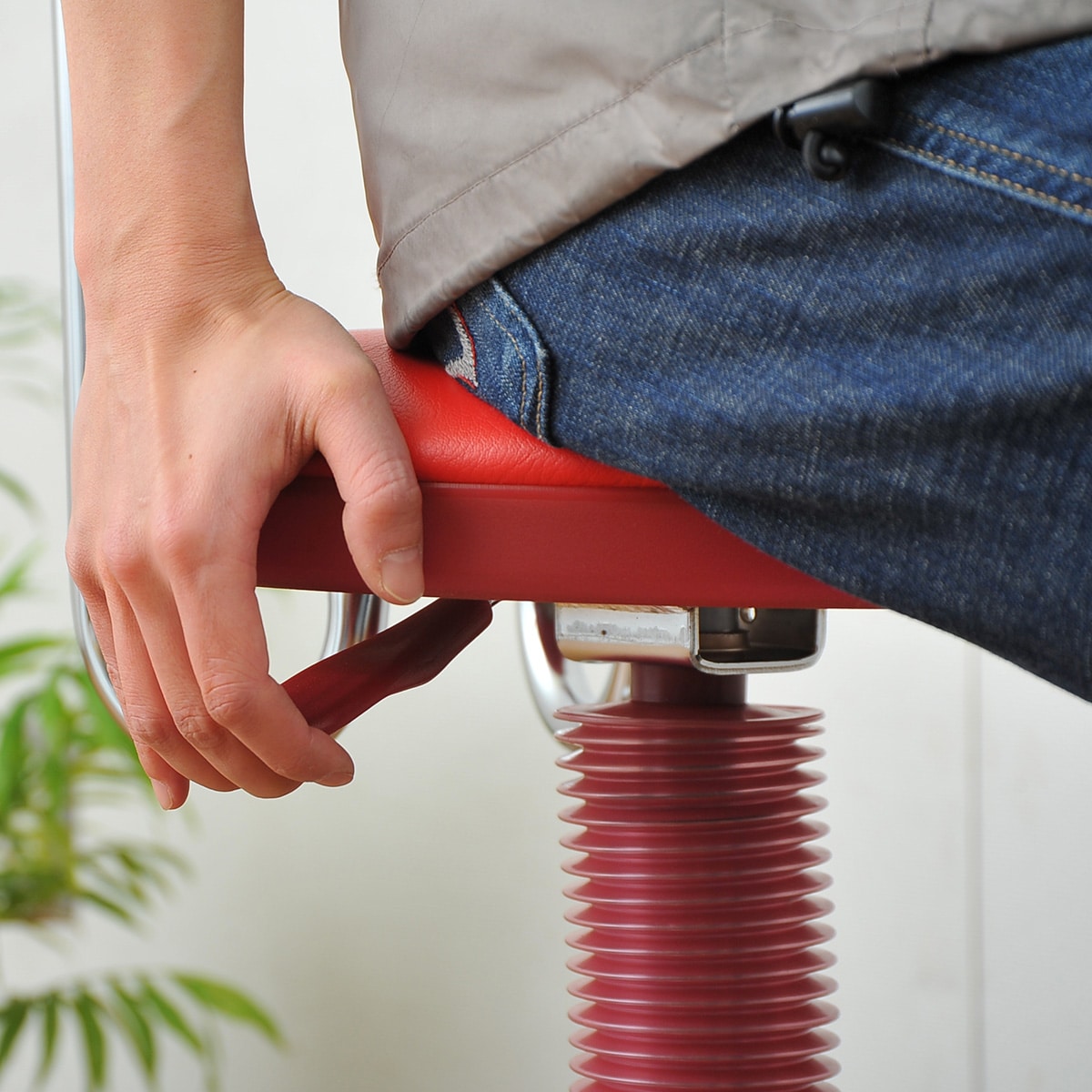 レッドレバー式なので座ったままで座面の高さ調節が可能。