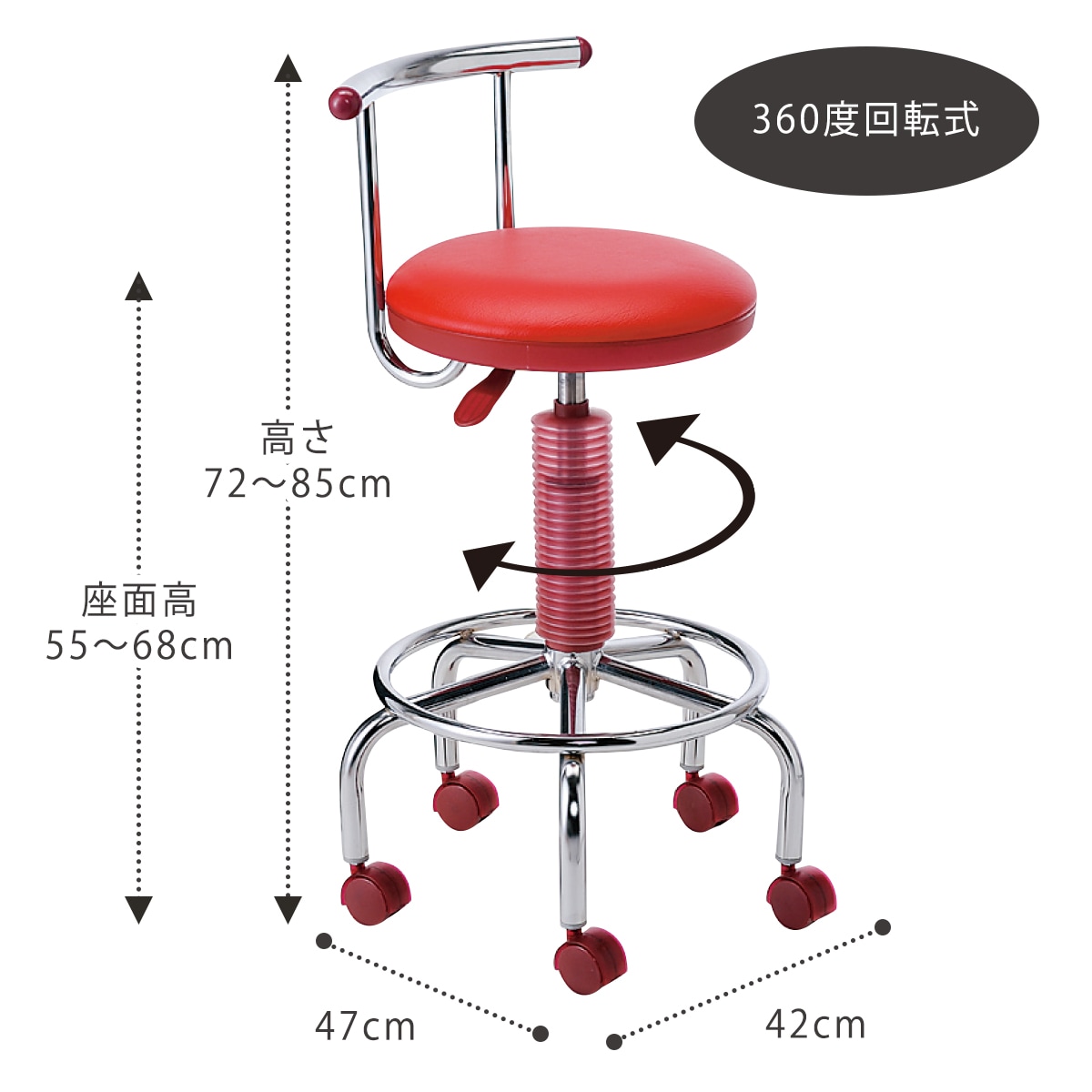 ■[本体]スチール(クロムメッキ) [座面]張地/合成皮革 中身/ウレタンフォーム ■製品重量/約7.5kg■耐荷重/約80kg※アジャスター使用時は高さが約2cm低くなります●キャスター・アジャスター付き ●台湾製【組立式(2人で)15分程度】【小型別配送】 ※沖縄県や一部島しょ部など配送上の都合によりお届けできない地域がございます。