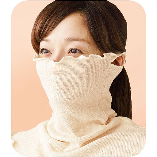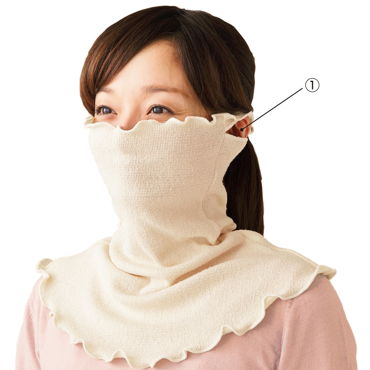 サッとかぶるだけの保湿ケア。シルク約98%でしっとり包み込む。耳に掛けられるからズレ落ちにくい。フリル形状で顔に跡がつきにくい。ーこだわりPOINTークシュクシュとすればネックカバーに。防寒、UVケアに。のどの乾燥、カサカサ唇、首・口元のシワを隠します。サッとマスク代わりにもOK!【UVカット率約99%】