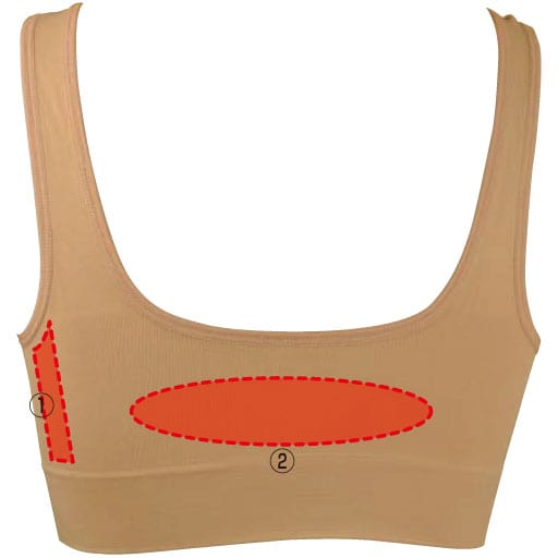 ノンワイヤー・ノンホックでラクなつけ心地ながら、丸みのある自然な美バストに。おやすみブラやスポーツブラとしても。(1)ずり上がりやめくれを防ぐワイドリフトバンドが締め付けずにバストを支えます。(2)肩にくいこみにくく、ズレ落ちにくい幅広ショルダー(3)気になるハミ肉を包み込む脇高設計(4)中央に向かって厚みをもたせたリフト&ホールドパッドで美バストラインに※イメージ