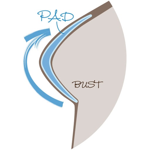 中央に向かって厚みをもたせ、高低差をつけたパッド。自然な丸みが美しい形に整えます。※イメージ